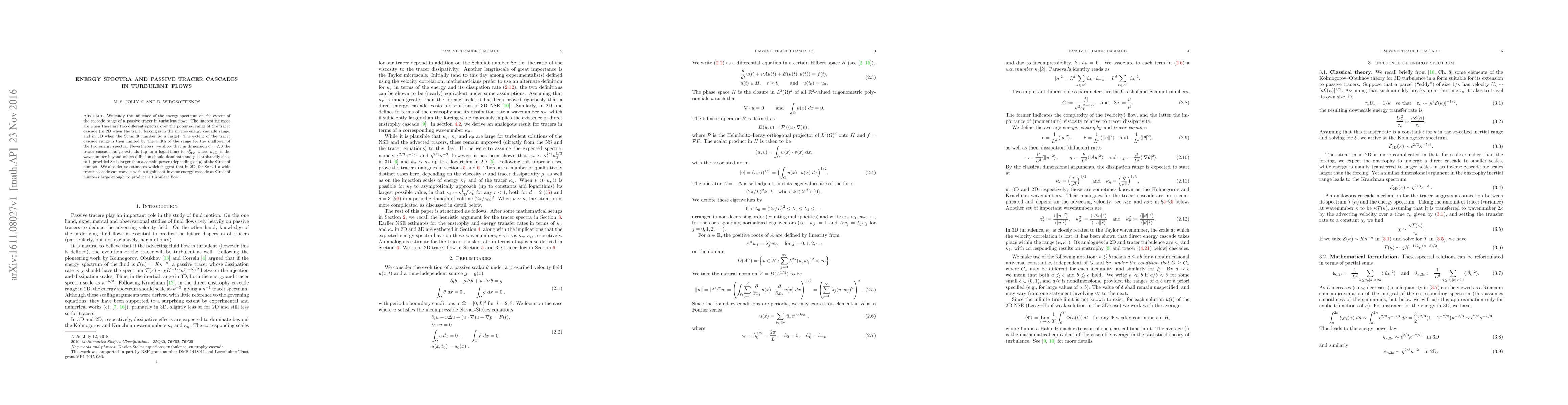 This paper investigates the impact of different energy spectra on the cascade range of passive tracers in turbulent flows, showing that the cascade range is limited by the shallower spectrum. It demonstrates that in dimensions 2 and 3, the tracer cascade extends to a wavenumber where diffusion dominates, provided the Schmidt number is sufficiently large relative to the Grashof number.