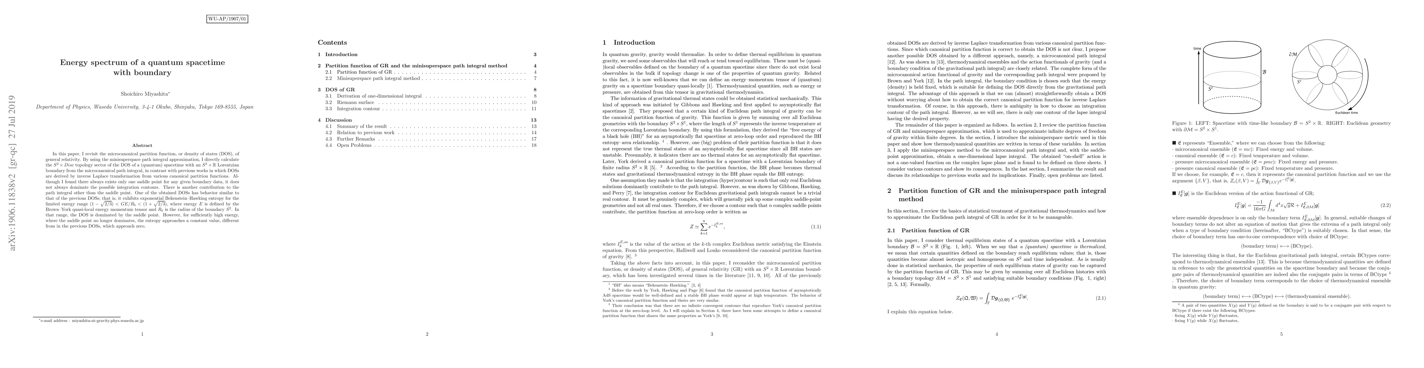 This research revisits the density of states (DOS) in general relativity using minisuperspace path integral approximation. It calculates DOS for a spacetime with an S^2×ℝ Lorentzian boundary and S^2×Disc topology, finding a single saddle point for any boundary data, but noting that it doesn't always dominate. The DOS exhibits exponential Bekenstein-Hawking entropy for specific energy ranges and transitions to a positive constant for very high energies, differing from previous findings.
