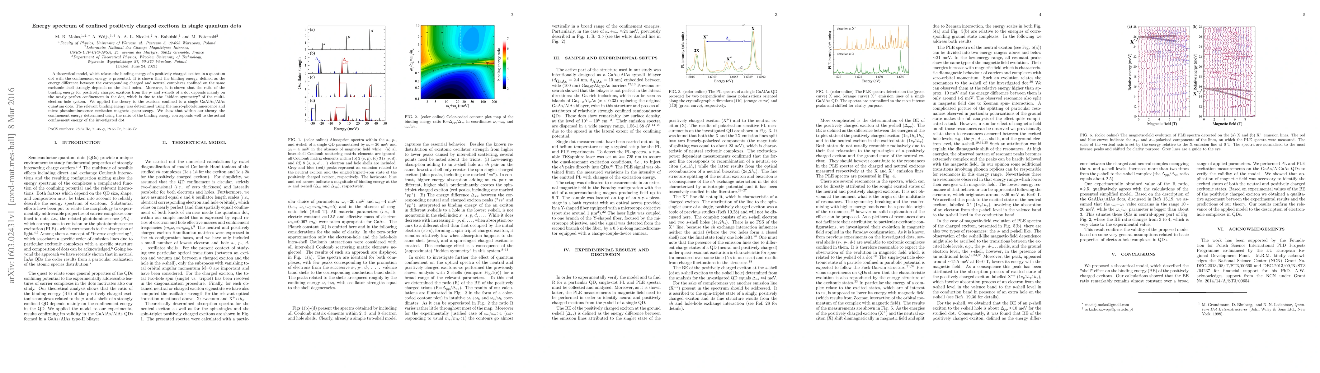 This paper presents a theoretical model to describe the binding energy of positively charged excitons in quantum dots, showing that it depends significantly on the exciton shell index. The study applies the theory to GaAlAs/AlAs quantum dots, demonstrating that the model accurately predicts confinement energy based on the ratio of binding energies for $p$- and $s$-shells.