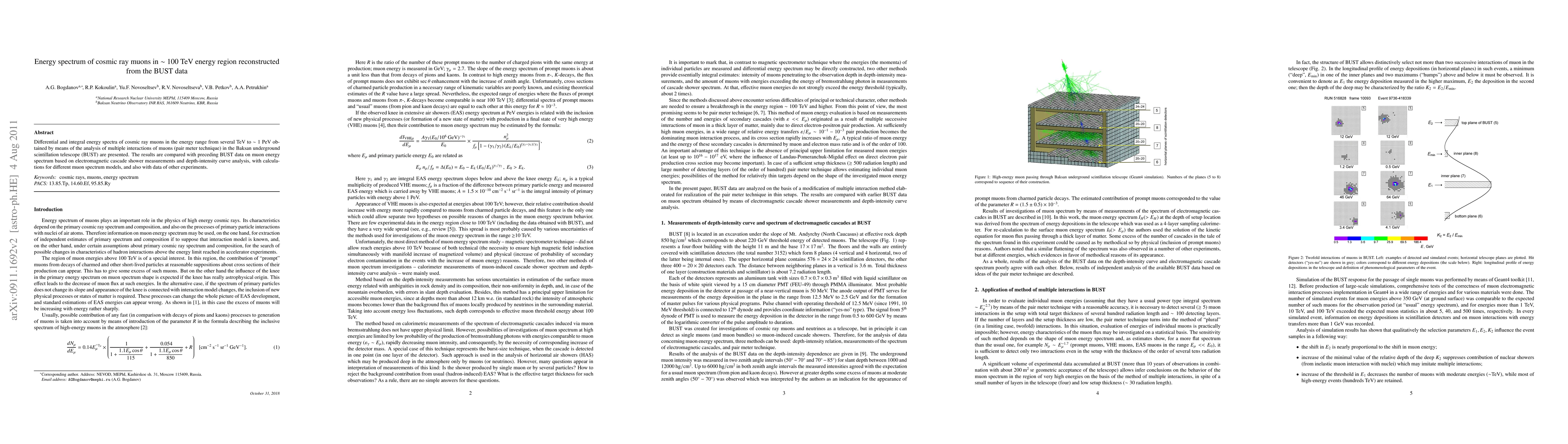 Researchers analyzed cosmic ray muon energy spectra using BUST data, revealing new insights into high-energy particle interactions and their comparison with previous experiments.