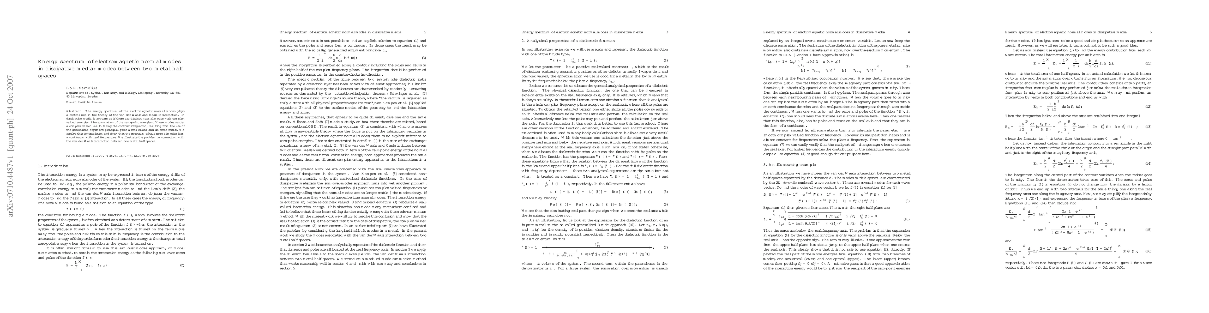 This research resolves a contradiction in the energy spectrum of electromagnetic normal modes in dissipative media, showing the spectrum forms a continuum with real frequencies, not complex. It illustrates this using the van der Waals interaction between two metal half spaces.