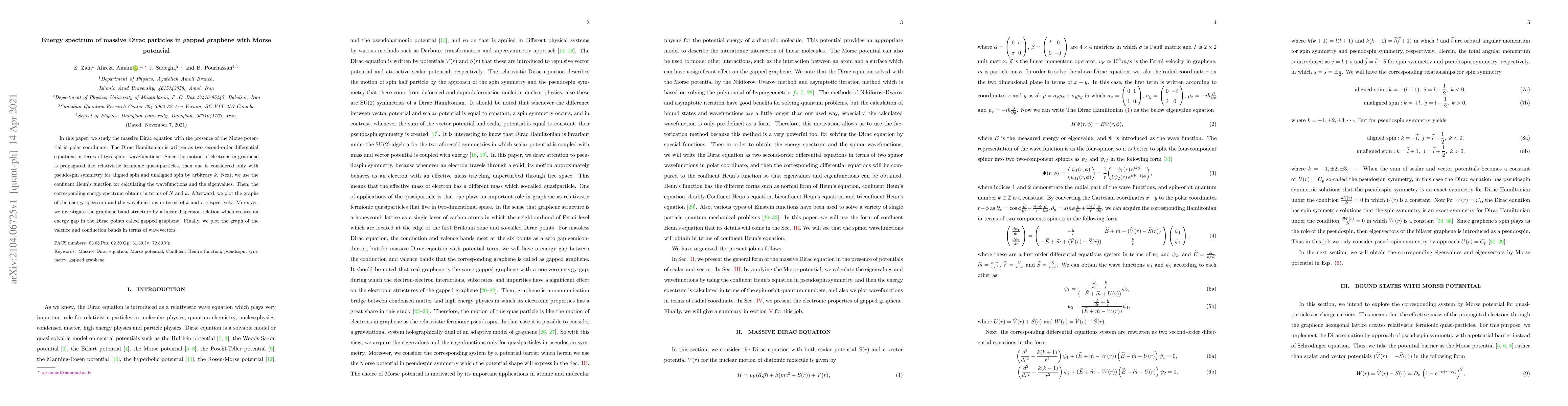 This paper investigates the energy spectrum of massive Dirac particles in gapped graphene under a Morse potential, employing confluent Heun's functions to solve the Dirac Hamiltonian. It analyzes the pseudospin symmetry and plots the energy spectrum and wavefunctions, revealing the graphene band structure with an energy gap.