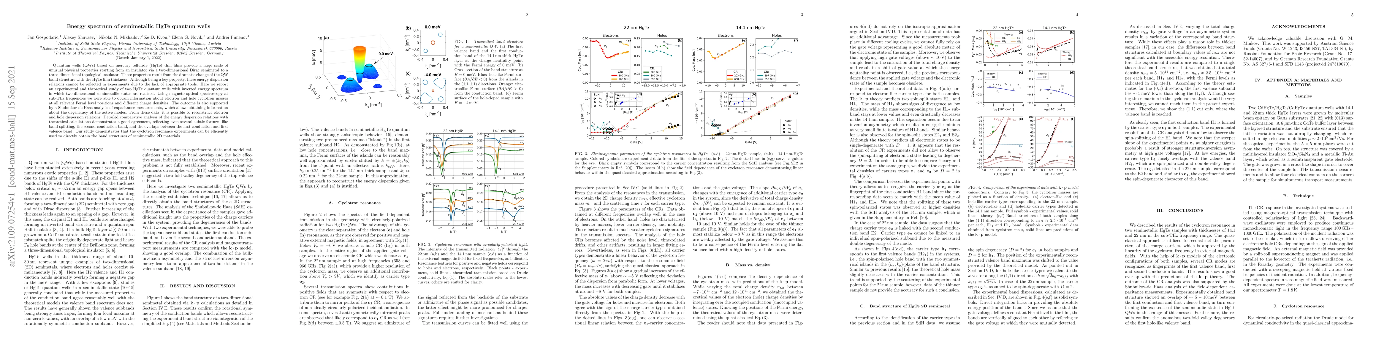 This study experimentally and theoretically investigates the energy spectrum of semimetallic HgTe quantum wells, using magneto-optical spectroscopy and Shubnikov-de Haas analysis to reconstruct electron and hole dispersion relations, revealing good agreement with theoretical models and demonstrating the effectiveness of cyclotron resonance experiments for semimetallic 2D materials.