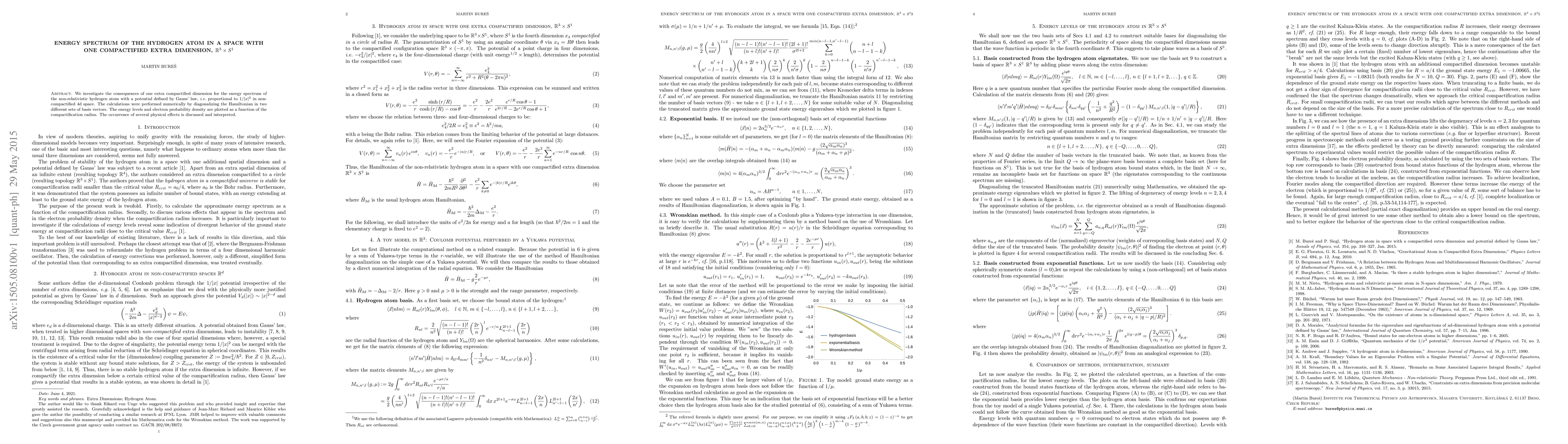 This paper numerically investigates the energy spectrum of a non-relativistic hydrogen atom in a space with one compactified extra dimension, $\mathbb{R}^3 \times S^1$, finding modified energy levels and electron probability densities dependent on the compactification radius. The study discusses several physical effects arising from the extra dimension.