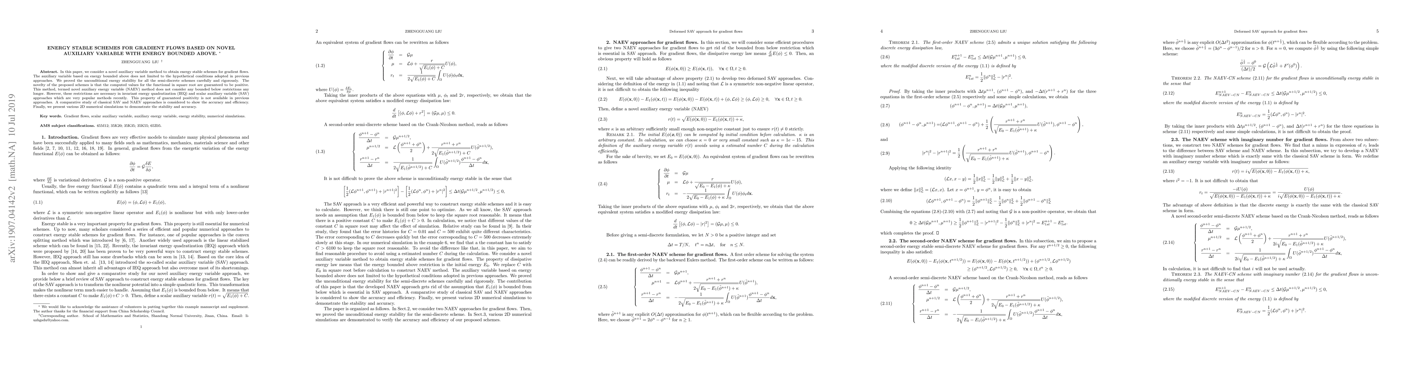 In this paper, we consider a novel auxiliary variable method to obtain energy stable schemes for gradient flows. The auxiliary variable based on energy bounded above does not limited to the hypothetical conditions adopted in previous approaches. We proved the unconditional energy stability for all the semi-discrete schemes carefully and rigorously. The novelty of the proposed schemes is that the computed values for the functional in square root are guaranteed to be positive. This method, termed novel auxiliary energy variable (NAEV) method does not consider any bounded below restrictions any longer. However, these restrictions are necessary in invariant energy quadratization (IEQ) and scalar auxiliary variable (SAV) approaches which are very popular methods recently. This property of guaranteed positivity is not available in previous approaches. A comparative study of classical SAV and NAEV approaches is considered to show the accuracy and efficiency. Finally, we present various 2D numerical simulations to demonstrate the stability and accuracy.