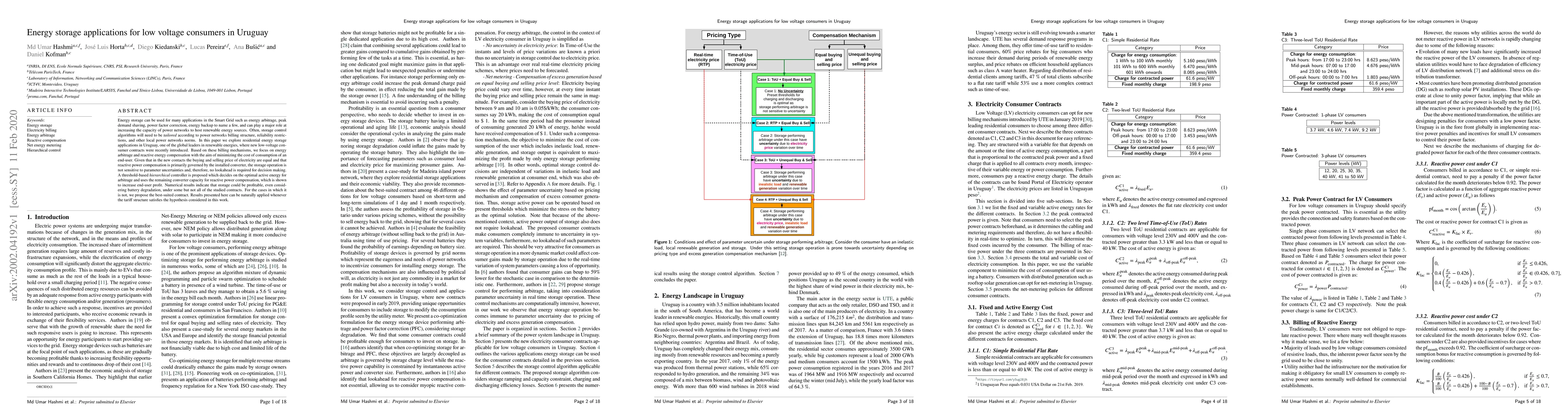 This paper explores energy storage applications for residential consumers in Uruguay, focusing on energy arbitrage and reactive energy compensation to minimize end-user costs. A threshold-based hierarchical controller is proposed to optimize active energy storage and reactive power compensation, showing potential profitability under certain contracts despite battery degradation.