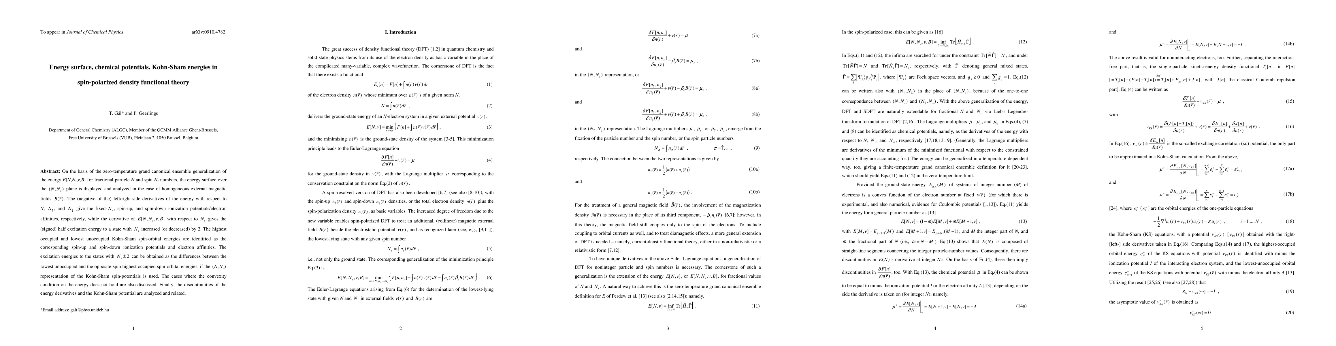 This paper explores the energy surface and chemical potentials in spin-polarized density functional theory under homogeneous magnetic fields, identifying spin-up and spin-down ionization potentials and electron affinities through derivatives of the energy functional. It also discusses the relationship between Kohn-Sham spin-orbital energies and excitation energies, alongside cases where the convexity condition fails.