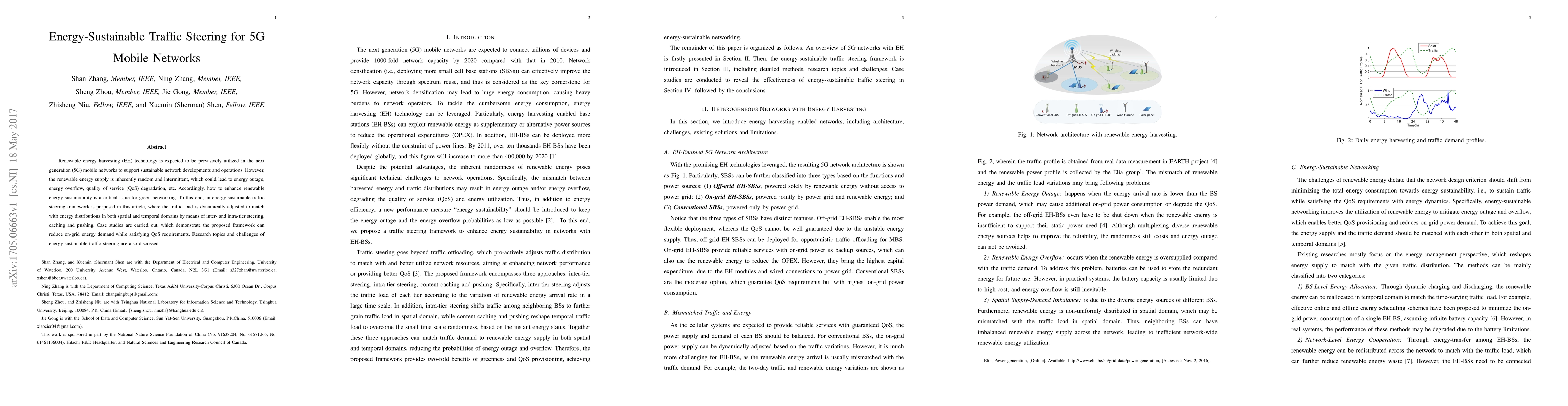 This paper proposes an energy-sustainable traffic steering framework for 5G mobile networks utilizing renewable energy harvesting. The framework dynamically adjusts traffic load to match energy availability, reducing on-grid energy demand and maintaining QoS, while discussing research challenges in green networking.