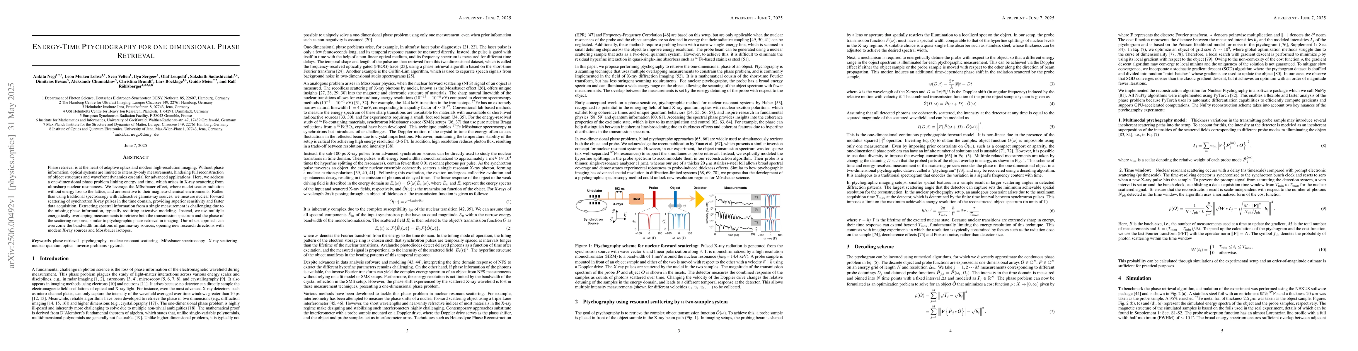 This research introduces Energy Time Ptychography for one-dimensional phase retrieval, utilizing the Mössbauer effect in X-ray scattering. It overcomes bandwidth limitations of traditional gamma-ray sources by extracting spectral information from synchrotron X-ray pulse measurements, enabling advanced imaging and wavefront dynamics studies.