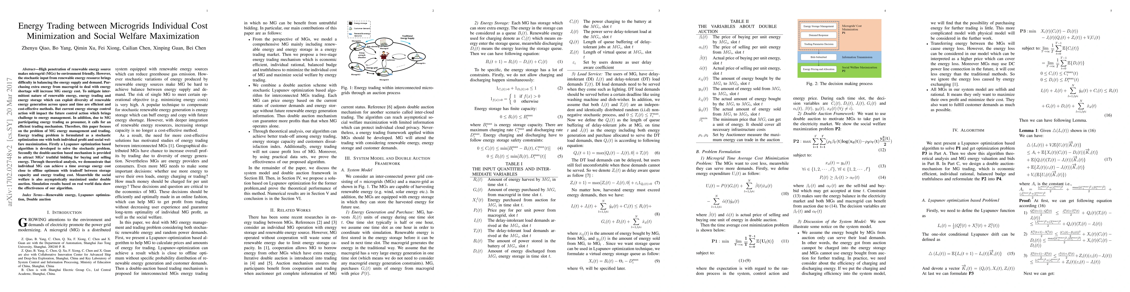 This paper proposes a stochastic optimization approach for energy trading between microgrids to minimize individual costs and maximize social welfare. It introduces a Lyapunov optimization algorithm and a double-auction mechanism to achieve efficient energy trading while balancing storage capacity and trading costs.