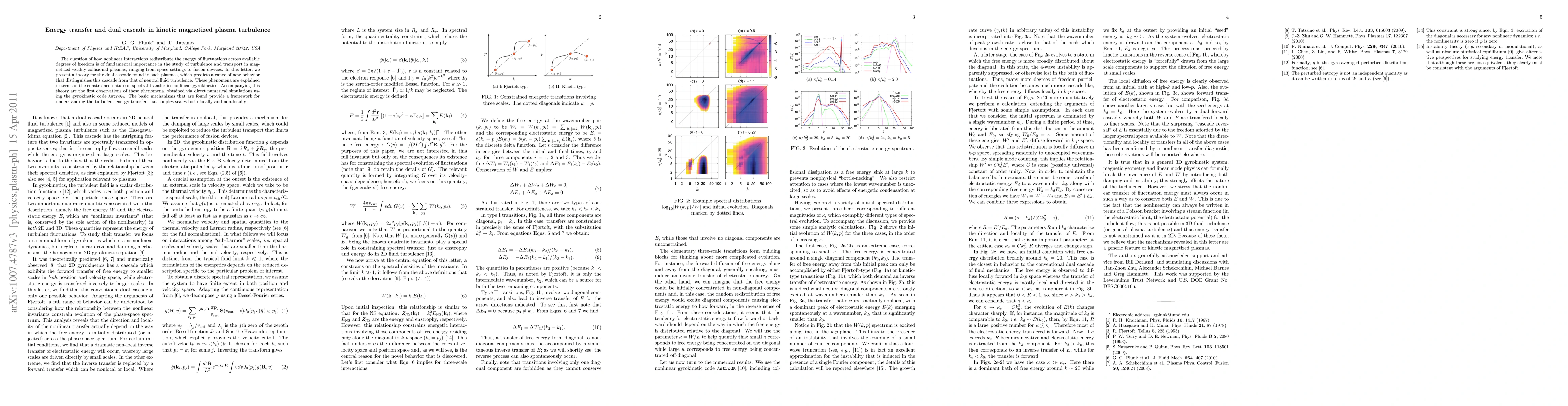 This paper presents a theory explaining the dual cascade in kinetic magnetized plasma turbulence, distinguishing it from neutral fluid turbulence due to the constrained spectral transfer in nonlinear gyrokinetics. The theory is supported by direct numerical simulations using the gyrokinetic code AstroGK, providing insights into the turbulent energy transfer mechanisms.