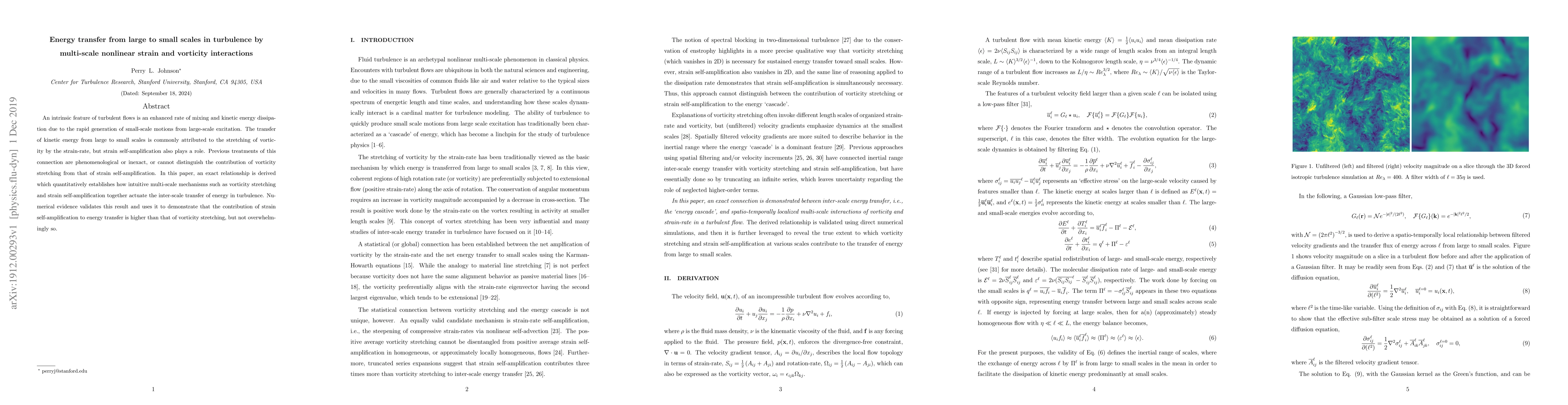 An intrinsic feature of turbulent flows is an enhanced rate of mixing and kinetic energy dissipation due to the rapid generation of small-scale motions from large-scale excitation. The transfer of kinetic energy from large to small scales is commonly attributed to the stretching of vorticity by the strain-rate, but strain self-amplification also plays a role. Previous treatments of this connection are phenomenological or inexact, or cannot distinguish the contribution of vorticity stretching from that of strain self-amplification. In this paper, an exact relationship is derived which quantitatively establishes how intuitive multi-scale mechanisms such as vorticity stretching and strain self-amplification together actuate the inter-scale transfer of energy in turbulence. Numerical evidence validates this result and uses it to demonstrate that the contribution of strain self-amplification to energy transfer is higher than that of vorticity stretching, but not overwhelmingly so.