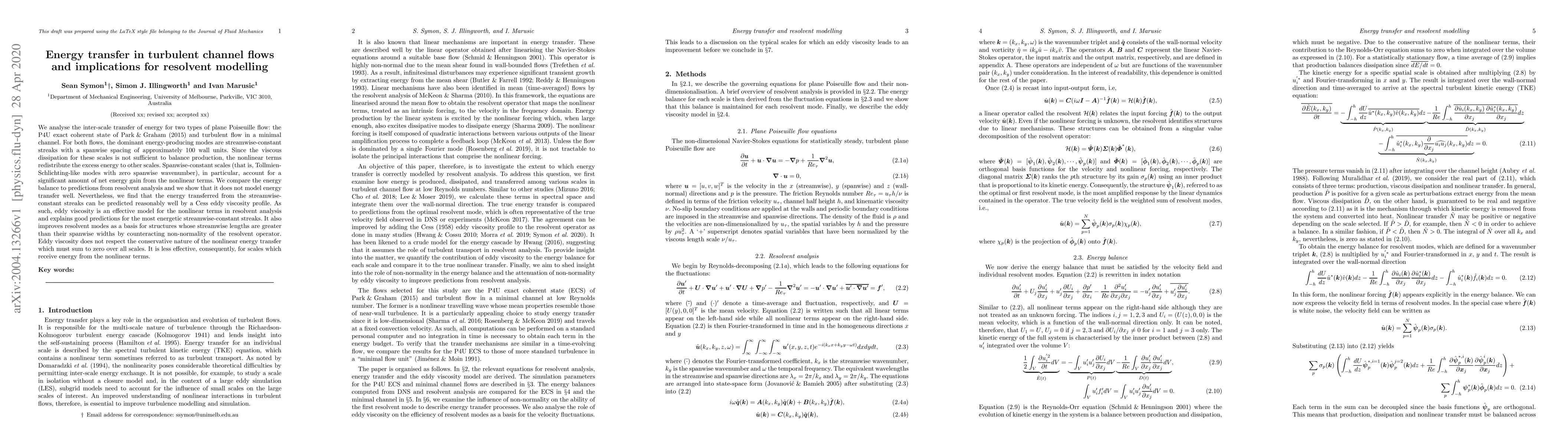 The study examines energy transfer in turbulent channel flows, finding that streamwise-constant streaks are key energy producers. Despite resolvent analysis not accurately modeling this, an eddy viscosity profile effectively predicts energy transfer from these streaks. This suggests eddy viscosity models nonlinear terms well, improving resolvent mode predictions for elongated structures, though it doesn't respect the conservative nature of nonlinear energy transfer.