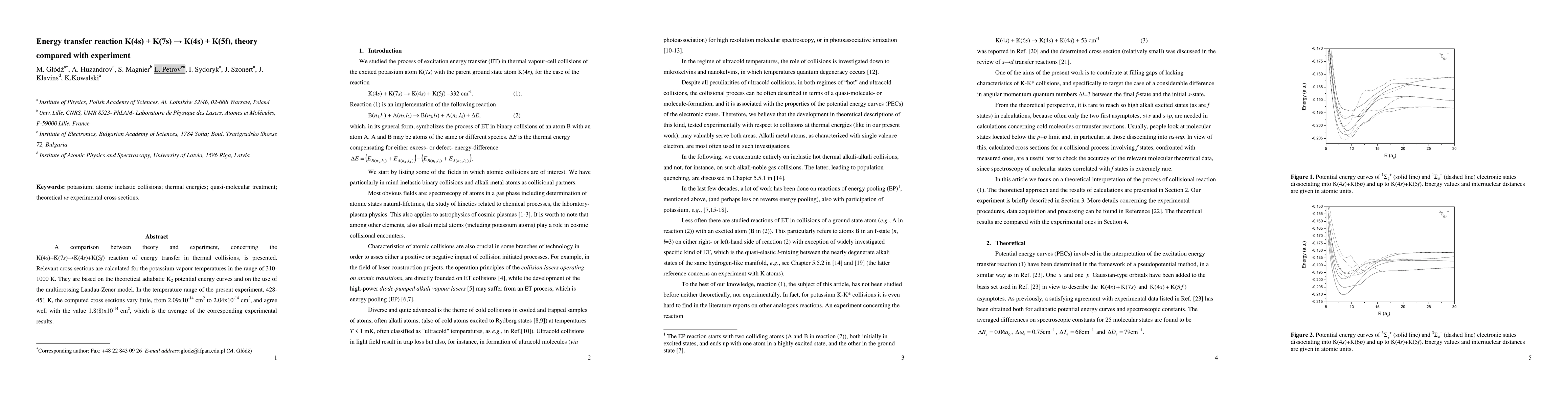 A comparison between theory and experiment, concerning the K(4s)+K(7s)\rightarrow K(4s)+K(5f) reaction of energy transfer in thermal collisions, is presented. Relevant cross sections are calculated for the potassium vapour temperatures in the range of 310-1000 K. They are based on the theoretical adiabatic K_2 potential energy curves and on the use of the multicrossing Landau-Zener model. In the temperature range of the present experiment, 428-451 K, the computed cross sections vary little, from 2.09x10^-14 cm^2 to 2.04x10^-14 cm^2, and agree well with the value 1.8(8)x10^-14 cm^2, which is the average of the corresponding experimental results.