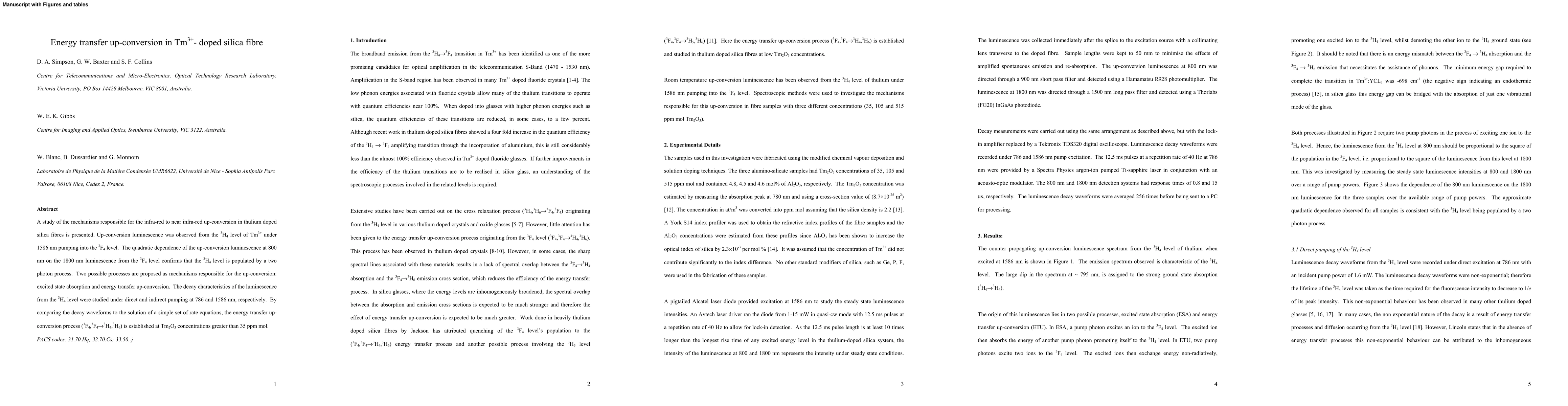 Researchers studied energy transfer up-conversion in Tm3+-doped silica fibers, finding that it occurs at concentrations of Tm2O3 above 200 ppm and is more efficient under direct pumping at 786 nm.