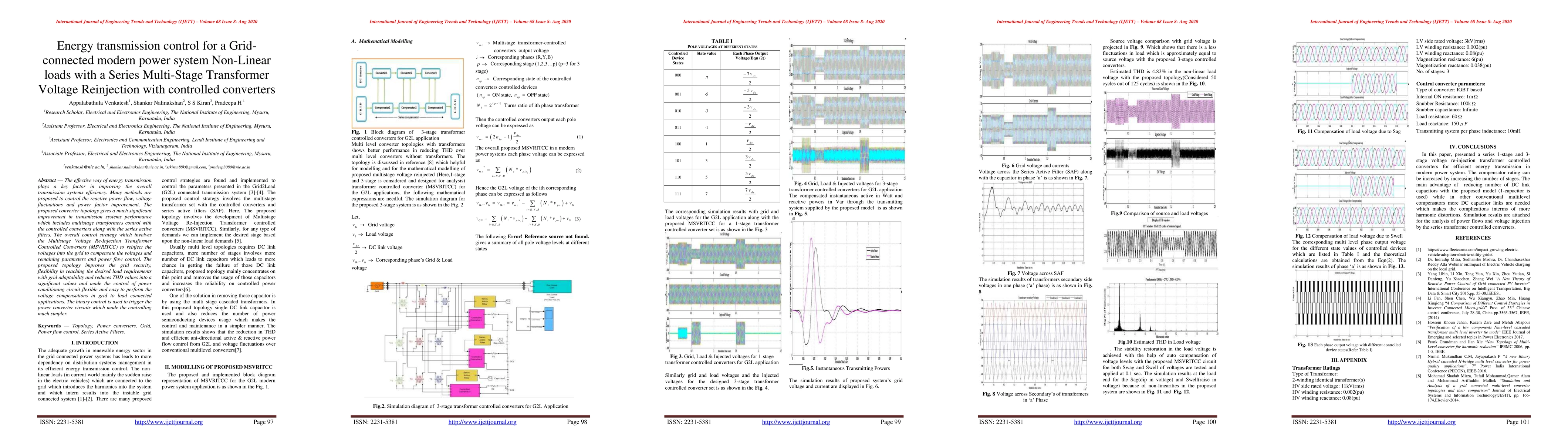 The effective way of energy transmission plays a key factor in improving the overall transmission systems efficiency. Many methods are proposed to control the reactive power flow, voltage fluctuations and power factor improvement, The proposed converter topology gives a much significant improvement in transmission systems performance which includes multistage transformers control with the controlled converters along with the series active filters. The overall control strategy which involves the Multistage Voltage Re-Injection Transformer Controlled Converters (MSVRITCC) to reinject the voltages into the grid to compensate the voltages and remaining parameters and power flow control. The proposed topology improves the grid security, flexibility in reaching the desired load requirements with grid adaptability and reduces THD values into a significant values and made the control of power conditioning circuit flexible and easy to perform the voltage compensations in grid to load connected applications. The binary control is used to trigger the power converter circuits which made the controlling much simpler.