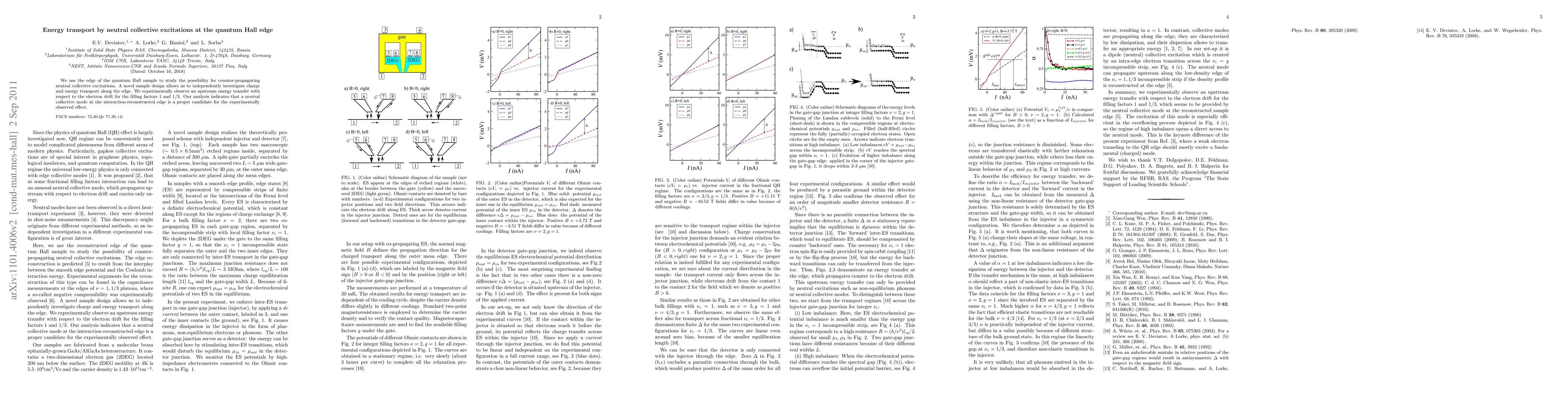 This research investigates counter-propagating neutral collective excitations at the quantum Hall edge using a novel sample design. Experimental results show upstream energy transfer relative to electron drift for filling factors 1 and 1/3, suggesting a neutral collective mode as the underlying mechanism.