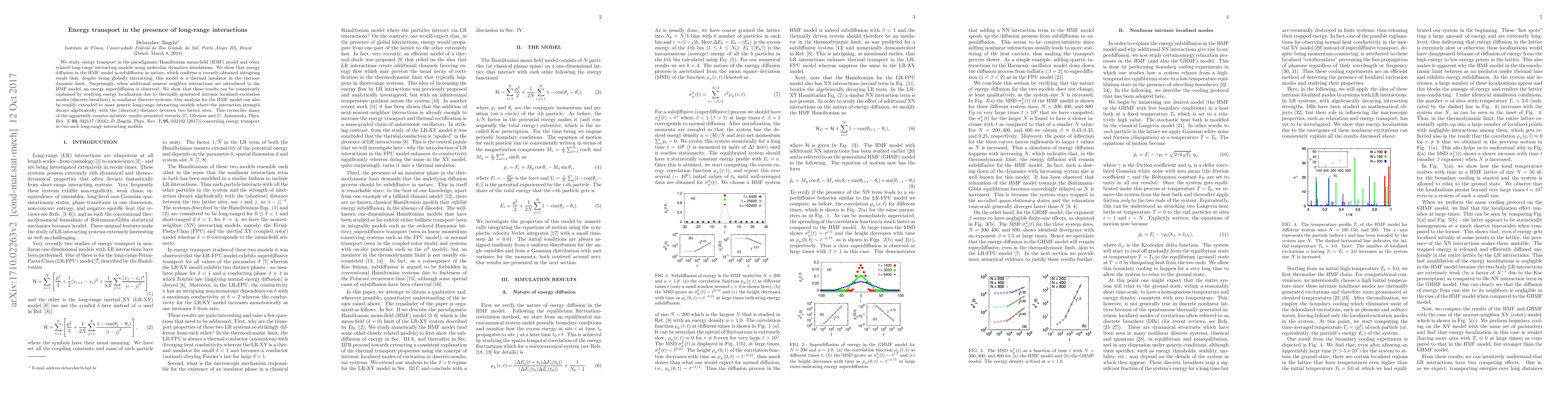 This paper investigates energy transport in Hamiltonian mean-field and long-range interacting models, revealing subdiffusive energy diffusion in the former, which acts as a thermal insulator. Introducing nearest neighbor interactions leads to energy superdiffusion, explained by energy localization due to discrete breathers.