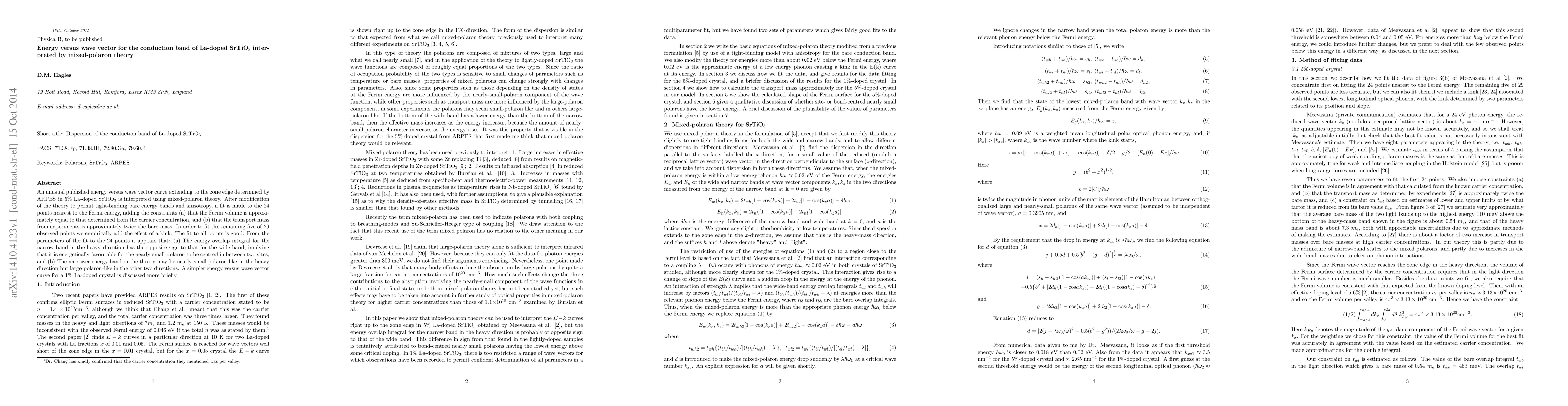 Researchers used mixed-polaron theory to interpret the energy versus wave vector curve of La-doped SrTiO3, finding that smaller polarons tend to form between two sites in the heavy direction.