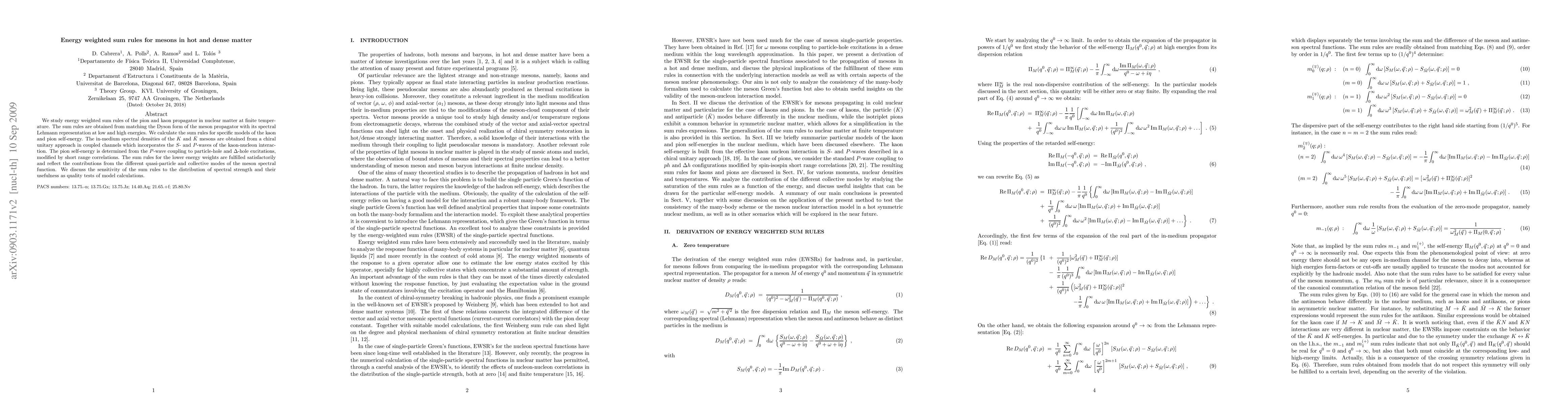 This paper investigates energy weighted sum rules for pion and kaon propagators in hot and dense nuclear matter, using Dyson and spectral representations. It finds satisfactory fulfillment of sum rules at lower energies, reflecting contributions from various meson modes, and discusses their utility in evaluating model accuracy.