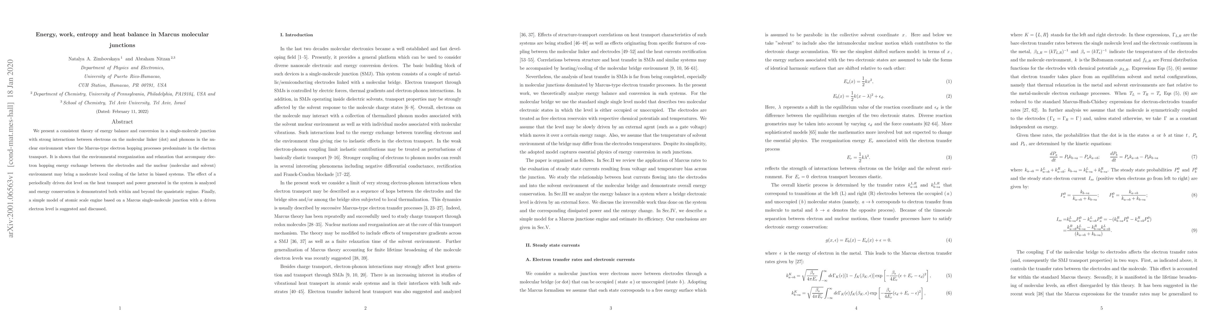 We present a consistent theory of energy balance and conversion in a single-molecule junction with strong interactions between electrons on the molecular linker (dot) and phonons in the nuclear environment where the Marcus-type electron hopping processes predominate in the electron transport. It is shown that the environmental reorganization and relaxation that accompany electron hopping energy exchange between the electrodes and the nuclear (molecular and solvent) environment may bring a moderate local cooling of the latter in biased systems. The effect of a periodically driven dot level on the heat transport and power generated in the system is analyzed and energy conservation is demonstrated both within and beyond the quasistatic regime. Finally, a simple model of atomic scale engine based on a Marcus single-molecule junction with a driven electron level is suggested and discussed.