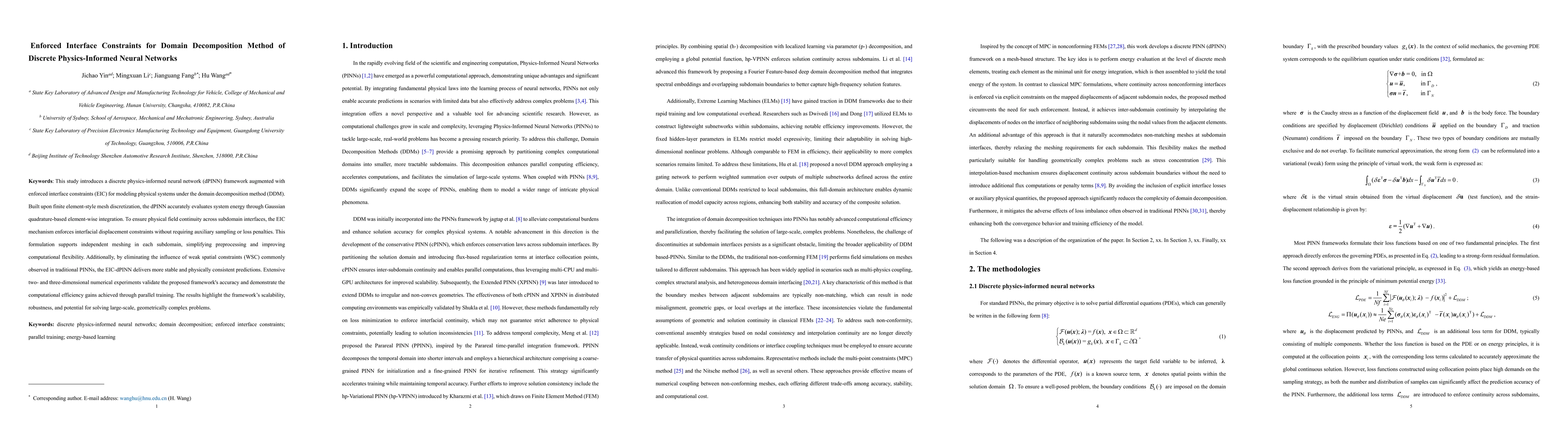 A new framework for modeling physical systems using discrete physics-informed neural networks with enforced interface constraints improves accuracy and stability while simplifying preprocessing and parallel training.
