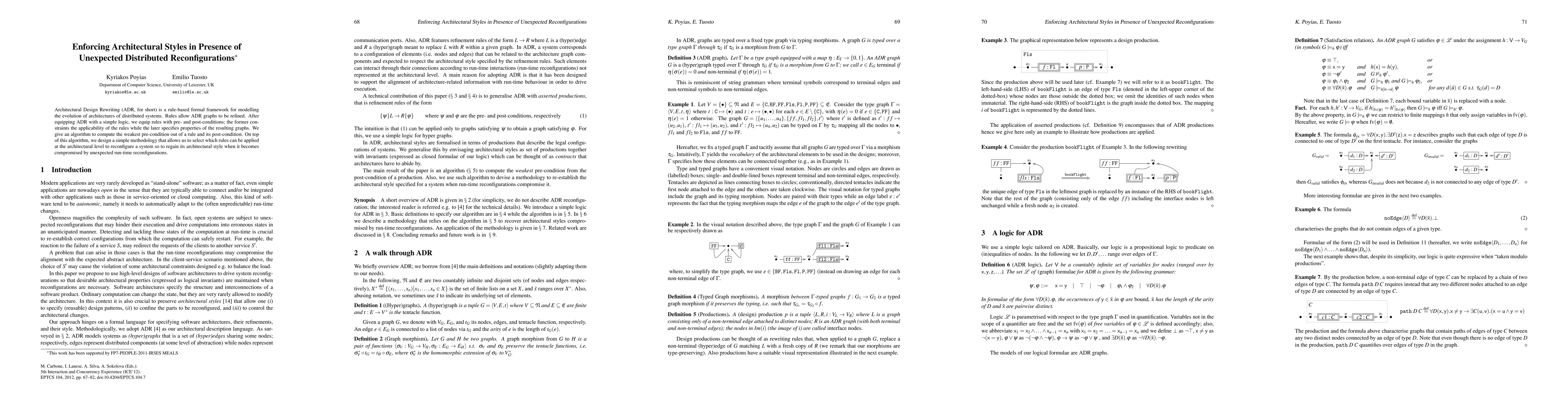 This paper proposes a rule-based framework called Architectural Design Rewriting (ADR) to model the evolution of distributed systems' architectures. The framework includes an algorithm for computing the weakest pre-conditions to enforce architectural styles during unexpected run-time reconfigurations, ensuring systems maintain their intended design.