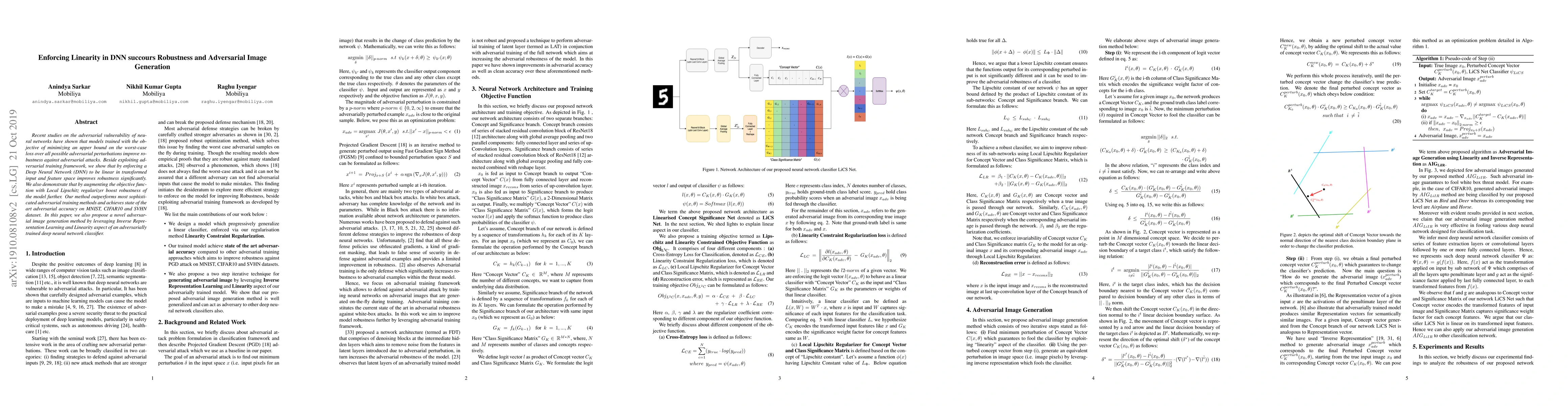 Recent studies on the adversarial vulnerability of neural networks have shown that models trained with the objective of minimizing an upper bound on the worst-case loss over all possible adversarial perturbations improve robustness against adversarial attacks. Beside exploiting adversarial training framework, we show that by enforcing a Deep Neural Network (DNN) to be linear in transformed input and feature space improves robustness significantly. We also demonstrate that by augmenting the objective function with Local Lipschitz regularizer boost robustness of the model further. Our method outperforms most sophisticated adversarial training methods and achieves state of the art adversarial accuracy on MNIST, CIFAR10 and SVHN dataset. In this paper, we also propose a novel adversarial image generation method by leveraging Inverse Representation Learning and Linearity aspect of an adversarially trained deep neural network classifier.