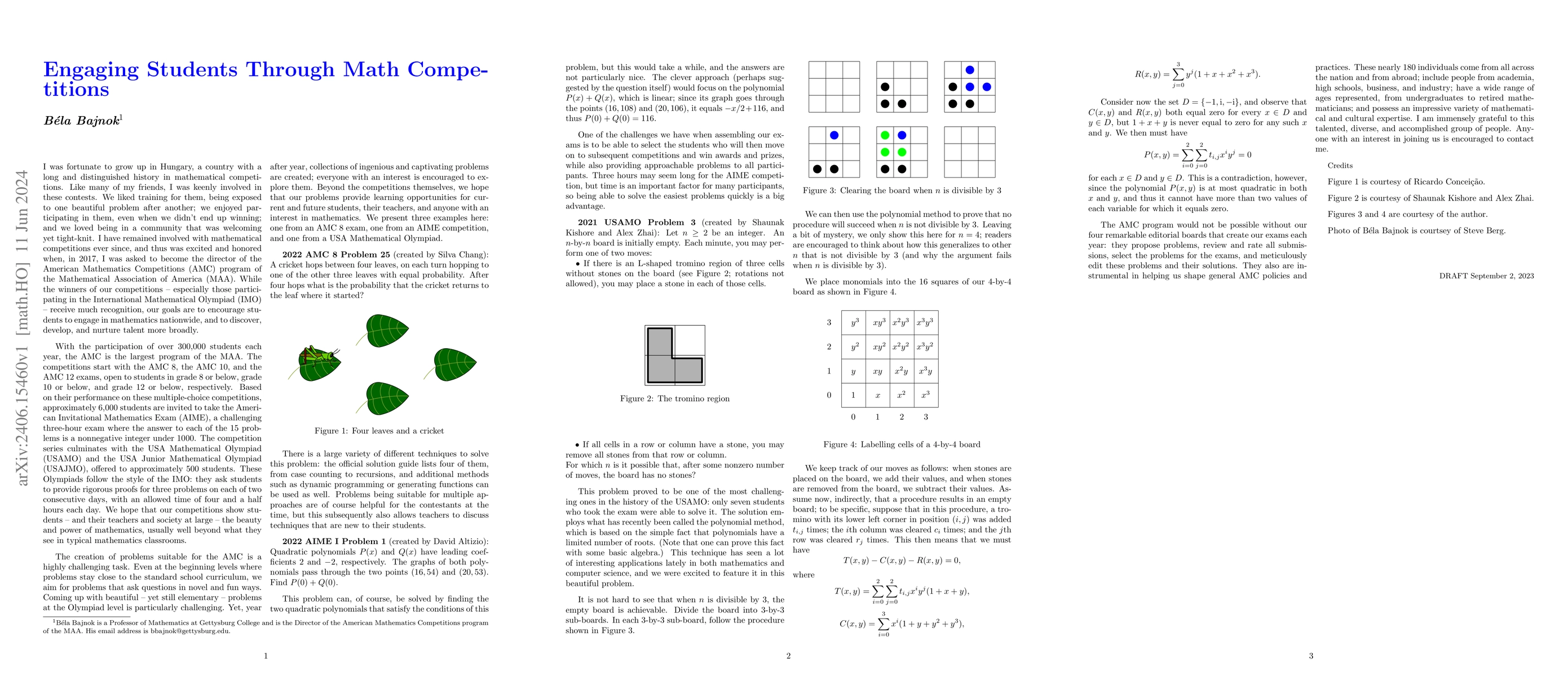 Summary: The article presents a collection of problems from the American Mathematics Competitions, aiming to engage students in mathematical problem-solving through participation in math competitions.