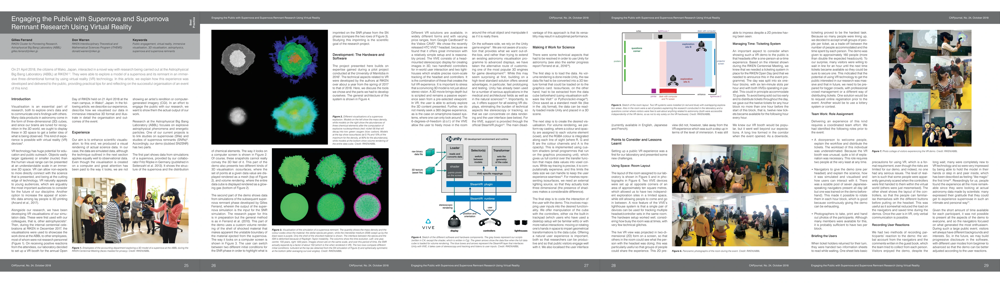 On 21 April 2018, the citizens of Wako, Japan, interacted in a novel way with research being carried out at the Astrophysical Big Bang Laboratory (ABBL) at RIKEN. They were able to explore a model of a supernova and its remnant in an immersive three-dimentional format by using virtual reality (VR) technology. In this article, we explain how this experience was developed and delivered to the public, providing practical tips for and reflecting on the successful organisation of an event of this kind.