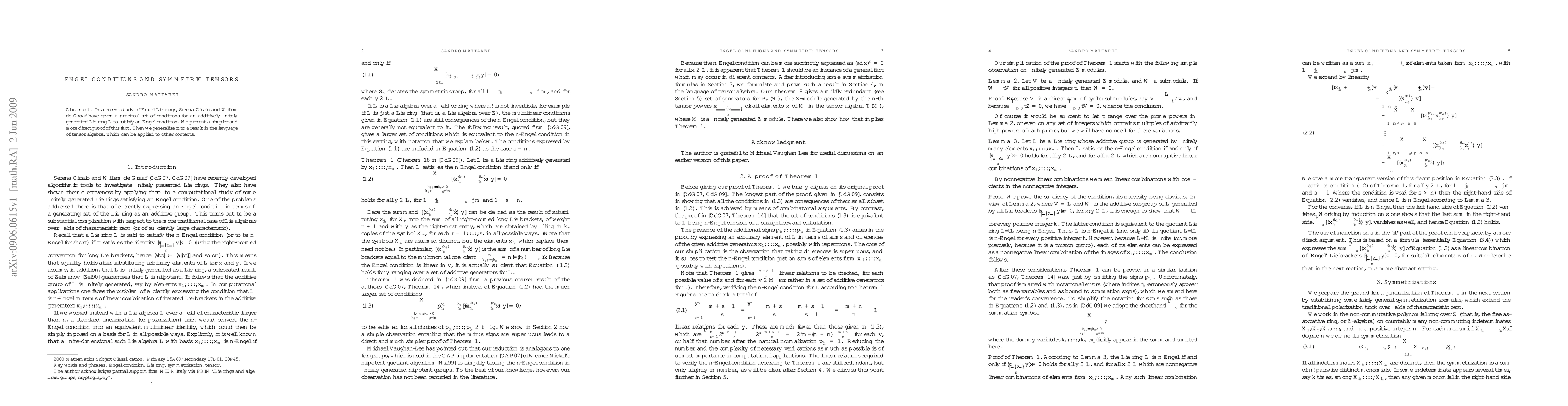 This paper provides a simpler proof of the Engel conditions for additively finitely generated Lie rings, originally established by Cicalo and de Graaf. It further generalizes the result to a broader context using symmetric tensors in tensor algebra.