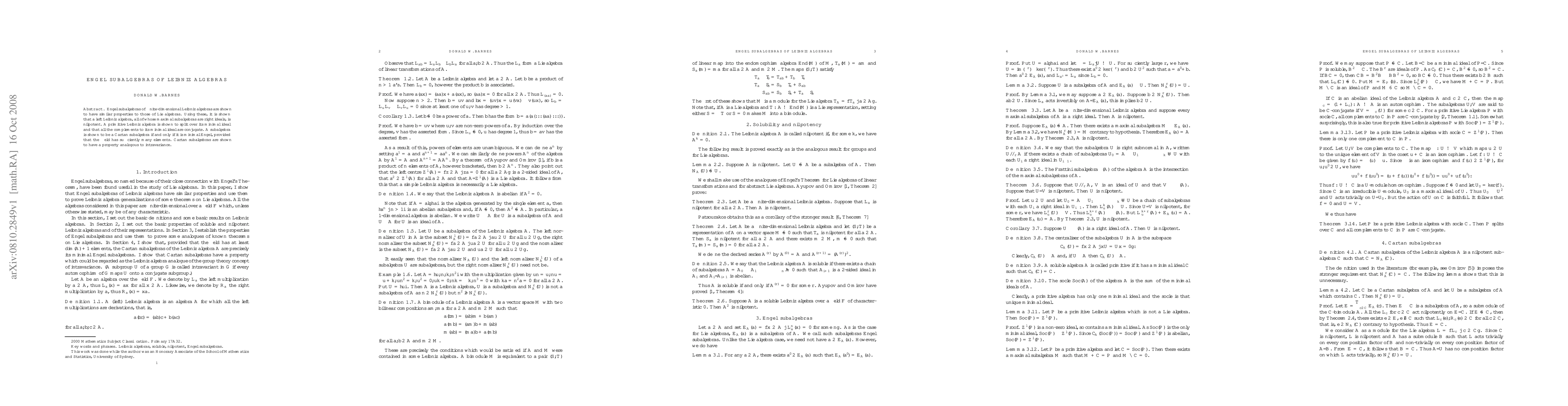 Engel subalgebras of finite-dimensional Leibniz algebras are shown to have similar properties to those of Lie algebras. Using these, it is shown that a left Leibniz algebra, all of whose maximal subalgebras are right ideals, is nilpotent. A primitive Leibniz algebra is shown to split over its minimal ideal and that all the complements to its minimal ideal are conjugate. A subalgebra is shown to be a Cartan subalgebra if and only if it is minimal Engel, provided that the field has sufficiently many elements. Cartan subalgebras are shown to have a property analogous to intravariance.