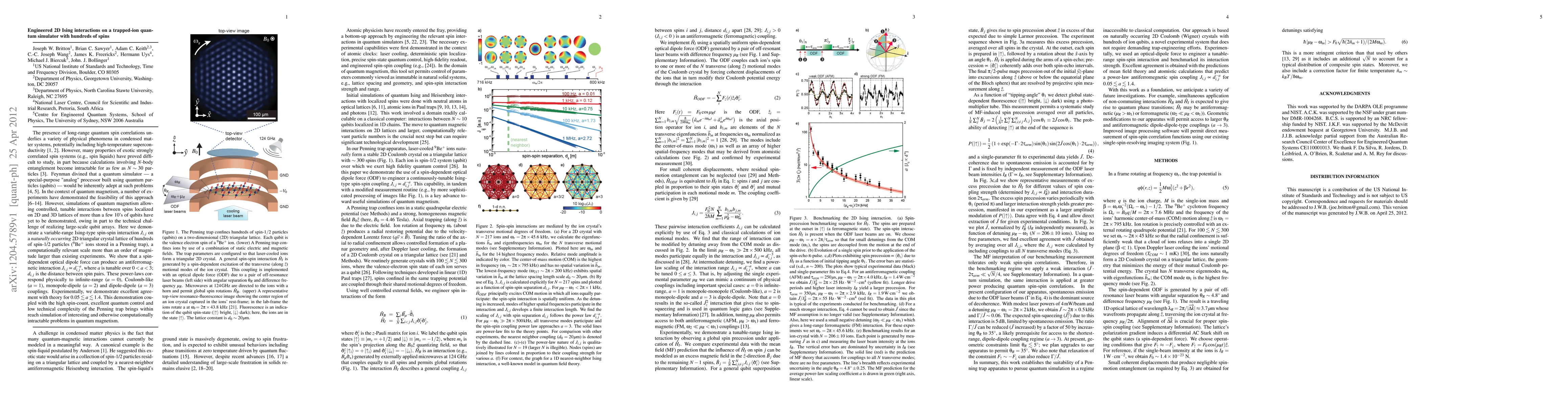 Researchers demonstrate a variable-range Ising-type spin-spin interaction on a 2D triangular lattice of hundreds of trapped-ion quantum simulator spins, achieving a scale larger than existing experiments.