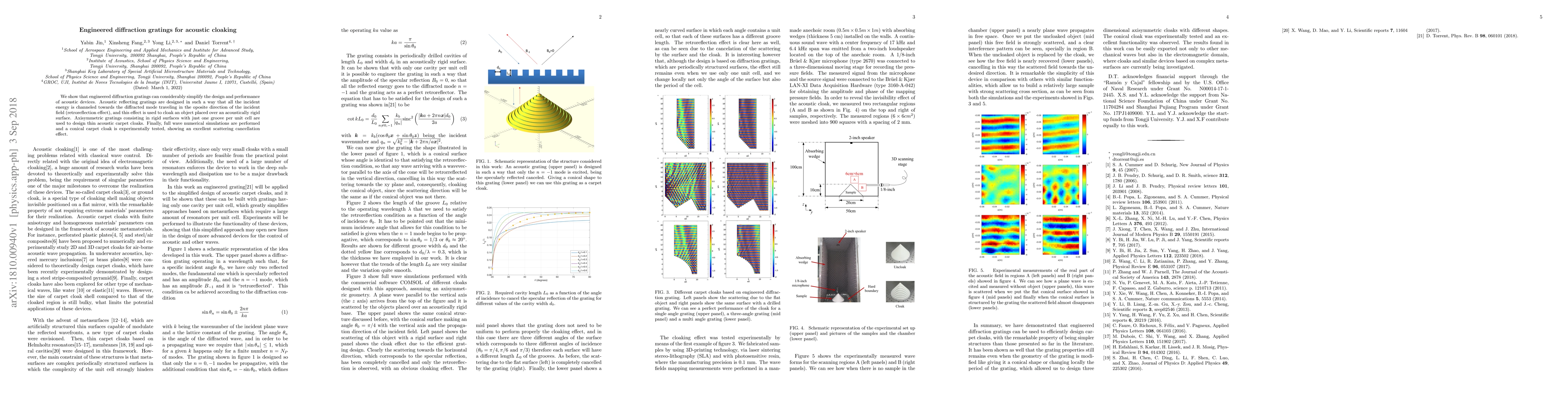 The use of engineered diffraction gratings to design acoustic devices and achieve cloaking effects.