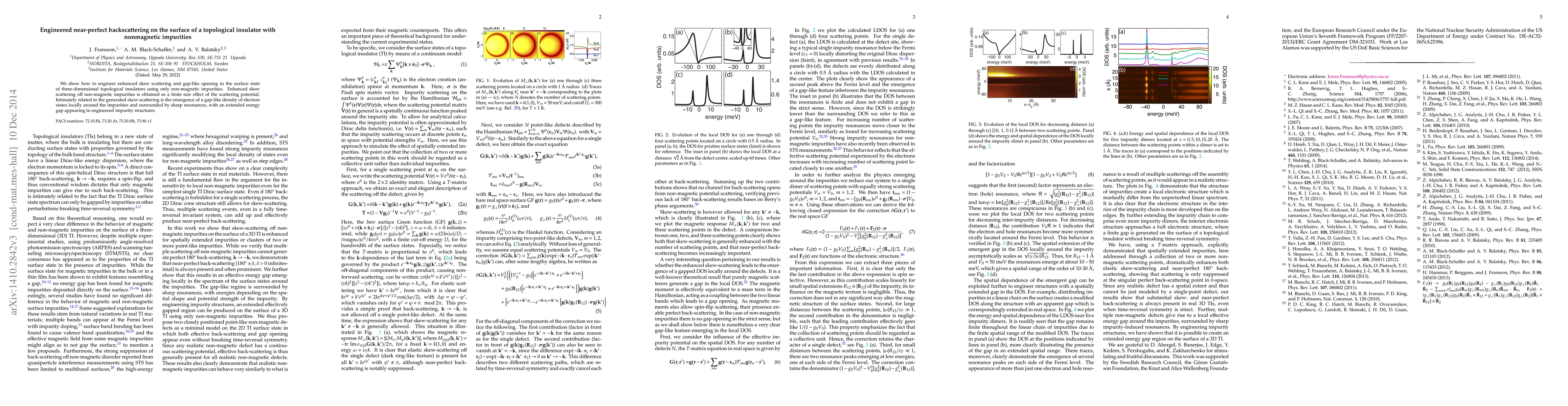 We show how to engineer enhanced skew scattering and gap-like opening in the surface state of three-dimensional topological insulators using only non-magnetic impurities. Enhanced skew scattering off non-magnetic impurities is obtained as a finite size effect of the scattering potential. Intimately related to the generated skew-scattering is the emergence of a gap-like density of electron states locally around the impurities and surrounded by sharp resonances, with an extended energy gap appearing in engineered impurity structures.