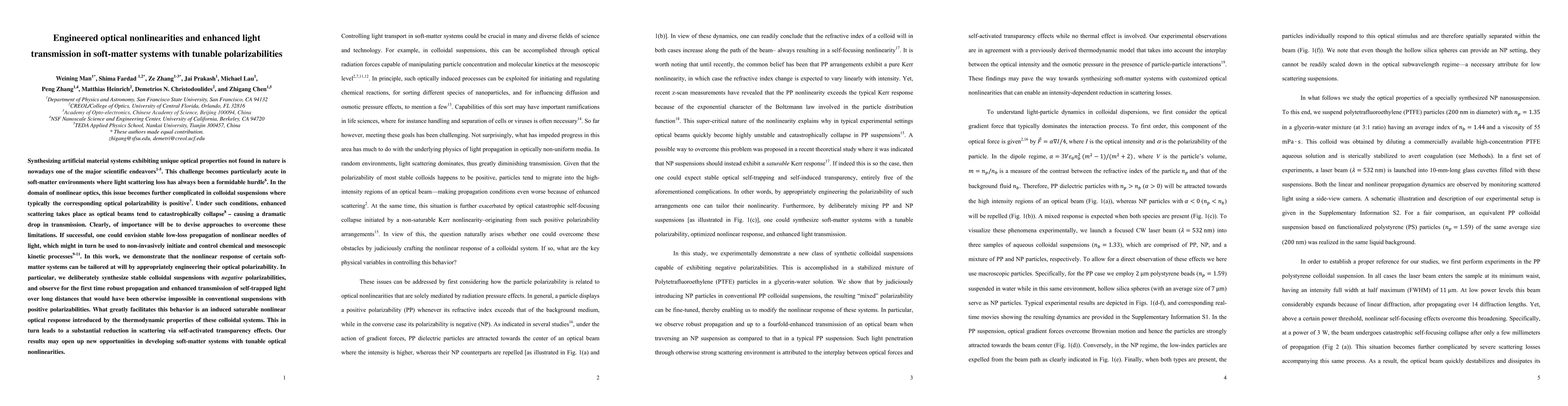 This research demonstrates the engineering of optical nonlinearities in soft-matter systems by tailoring their optical polarizability, leading to enhanced light transmission and robust propagation of self-trapped light over long distances. The study introduces stable colloidal suspensions with negative polarizabilities and saturable nonlinear optical responses, significantly reducing scattering and opening new avenues for tunable optical nonlinearities.