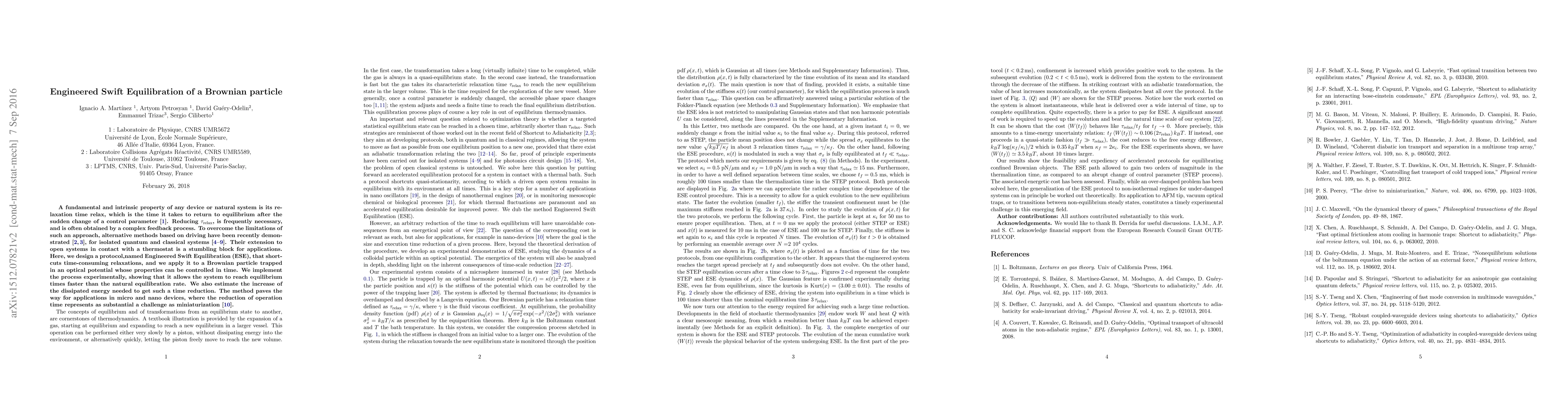 The paper presents the ESE protocol, a novel method to accelerate equilibration in Brownian particle systems, along with its experimental implementation and theoretical analysis.
