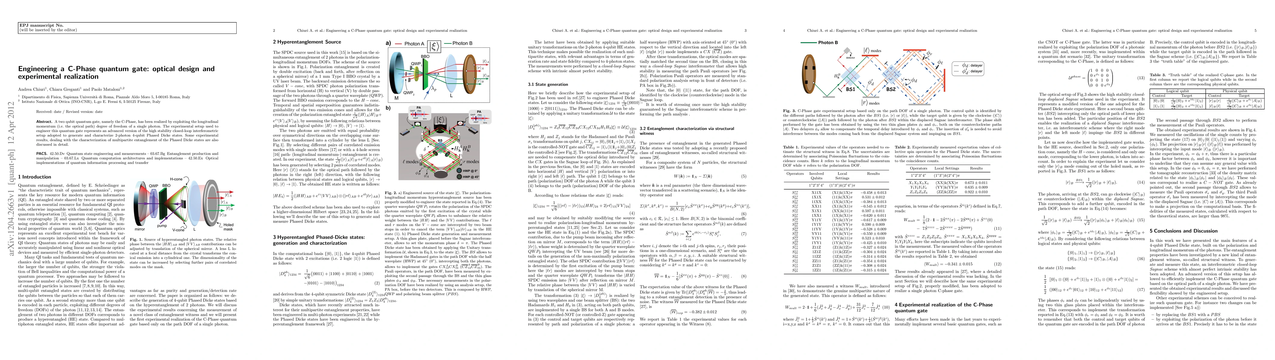 This paper details the engineering of a C-Phase quantum gate using the optical path of a single photon, employing an advanced interferometric setup. Experimental results include the characterization of multipartite entanglement in 2-photon 4-qubit Phased Dicke states.