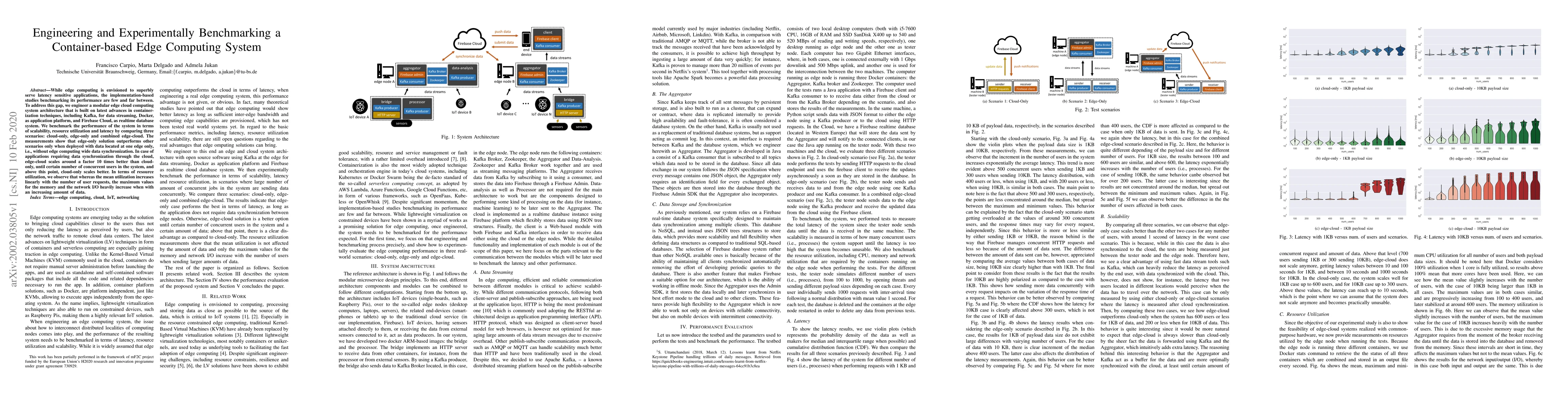 This paper engineers and benchmarks a modular container-based edge computing system using Kafka, Docker, and Firebase Cloud. Performance comparisons reveal that edge-only solutions are best for localized data, while combined edge-cloud scales significantly better for synchronized data, though cloud-only outperforms it at high concurrency levels.
