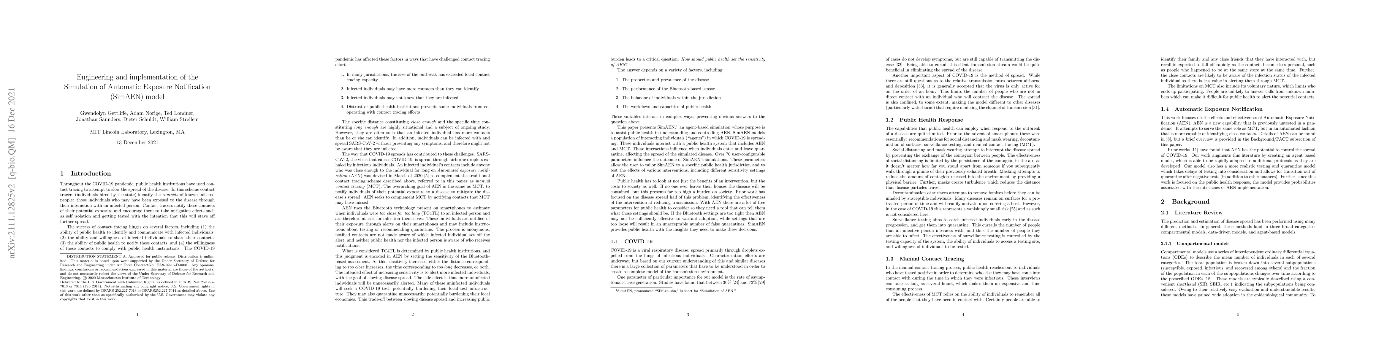 SimAEN is an agent-based simulation designed to model COVID-19 spread and interactions with public health systems, including Automated Exposure Notification and Manual Contact Tracing. It allows users to test various interventions through over 70 configurable parameters.