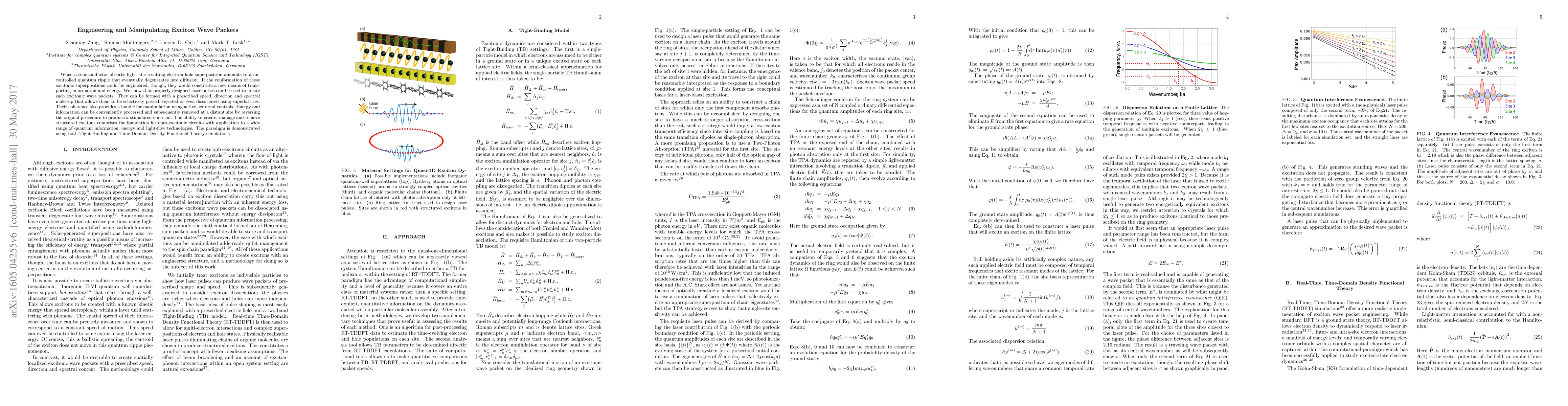When a semiconductor absorbs light, the resulting electron-hole superposition amounts to a uncontrolled quantum ripple that eventually degenerates into diffusion. If the conformation of these excitonic superpositions could be engineered, though, they would constitute a new means of transporting information and energy. We show that properly designed laser pulses can be used to create such excitonic wave packets. They can be formed with a prescribed speed, direction and spectral make-up that allows them to be selectively passed, rejected or even dissociated using superlattices. Their coherence also provides a handle for manipulation using active, external controls. Energy and information can be conveniently processed and subsequently removed at a distant site by reversing the original procedure to produce a stimulated emission. The ability to create, manage and remove structured excitons comprises the foundation for opto-excitonic circuits with application to a wide range of quantum information, energy and light-flow technologies. The paradigm is demonstrated using both Tight-Binding and Time-Domain Density Functional Theory simulations.