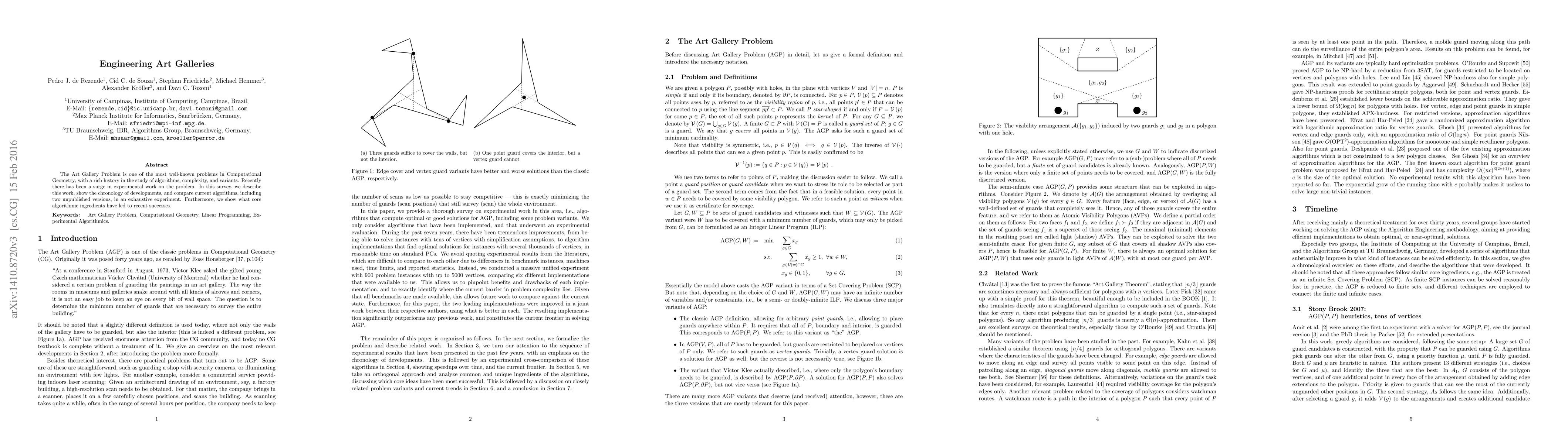 Researchers surveyed recent experimental work on the Art Gallery Problem, comparing algorithms to identify key ingredients for success. They also performed an exhaustive experiment featuring two unpublished versions.