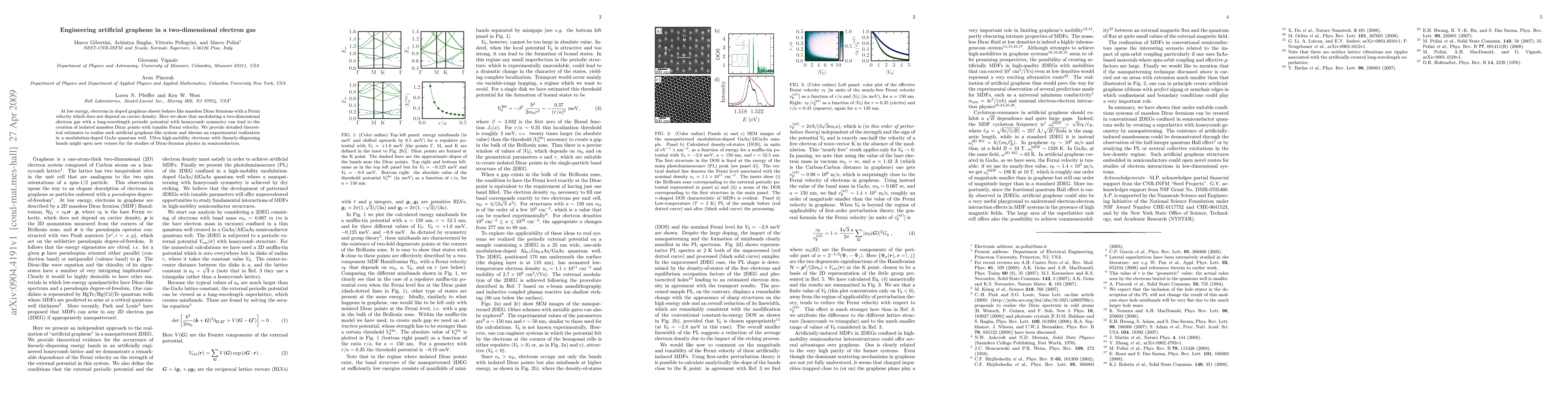 This paper demonstrates the engineering of artificial graphene in a two-dimensional electron gas by modulating it with a periodic potential, creating tunable massless Dirac points. It provides theoretical estimates for realizing such a system and discusses potential experimental realization in a modulation-doped GaAs quantum well.