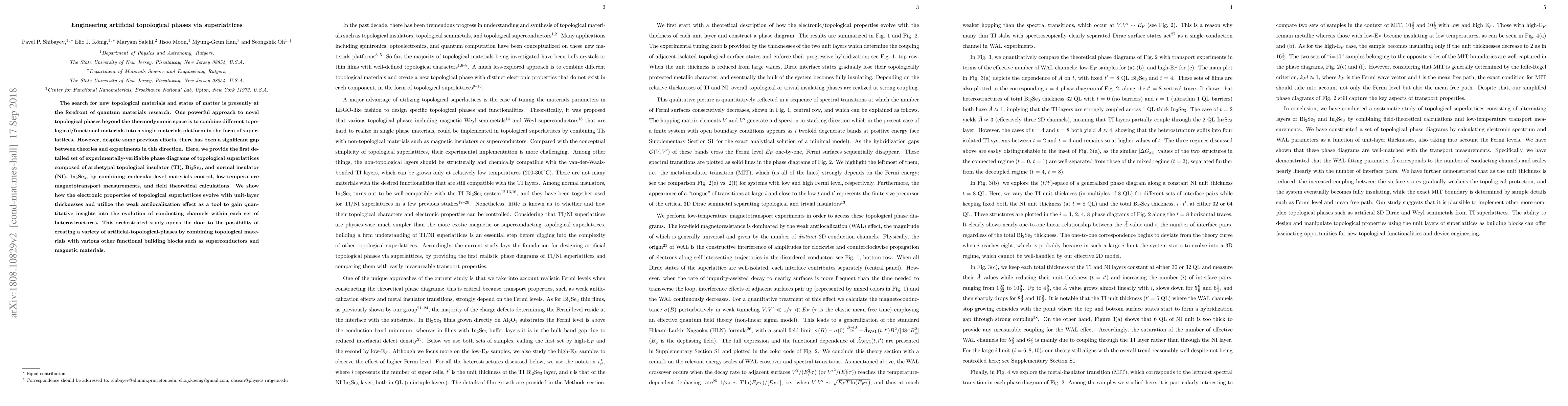 This paper presents experimentally-verifiable phase diagrams for topological superlattices made from Bi₂Se₃ and In₂Se₃, revealing the evolution of electronic properties with layer thickness. The study combines advanced materials control, low-temperature transport measurements, and theoretical calculations to explore the potential for engineering artificial topological phases.
