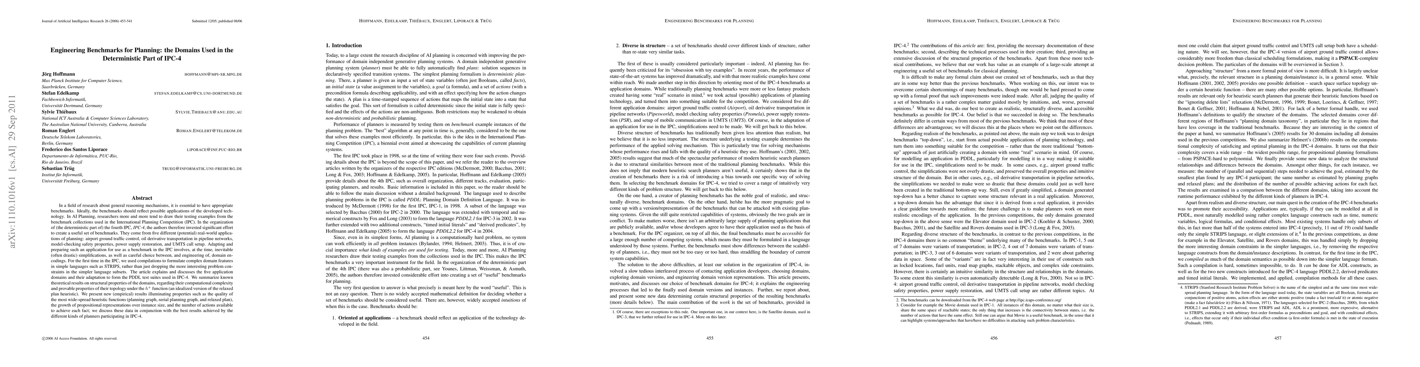 In a field of research about general reasoning mechanisms, it is essential to have appropriate benchmarks. Ideally, the benchmarks should reflect possible applications of the developed technology. In AI Planning, researchers more and more tend to draw their testing examples from the benchmark collections used in the International Planning Competition (IPC). In the organization of (the deterministic part of) the fourth IPC, IPC-4, the authors therefore invested significant effort to create a useful set of benchmarks. They come from five different (potential) real-world applications of planning: airport ground traffic control, oil derivative transportation in pipeline networks, model-checking safety properties, power supply restoration, and UMTS call setup. Adapting and preparing such an application for use as a benchmark in the IPC involves, at the time, inevitable (often drastic) simplifications, as well as careful choice between, and engineering of, domain encodings. For the first time in the IPC, we used compilations to formulate complex domain features in simple languages such as STRIPS, rather than just dropping the more interesting problem constraints in the simpler language subsets. The article explains and discusses the five application domains and their adaptation to form the PDDL test suites used in IPC-4. We summarize known theoretical results on structural properties of the domains, regarding their computational complexity and provable properties of their topology under the h+ function (an idealized version of the relaxed plan heuristic). We present new (empirical) results illuminating properties such as the quality of the most wide-spread heuristic functions (planning graph, serial planning graph, and relaxed plan), the growth of propositional representations over instance size, and the number of actions available to achieve each fact; we discuss these data in conjunction with the best results achieved by the different kinds of planners participating in IPC-4.