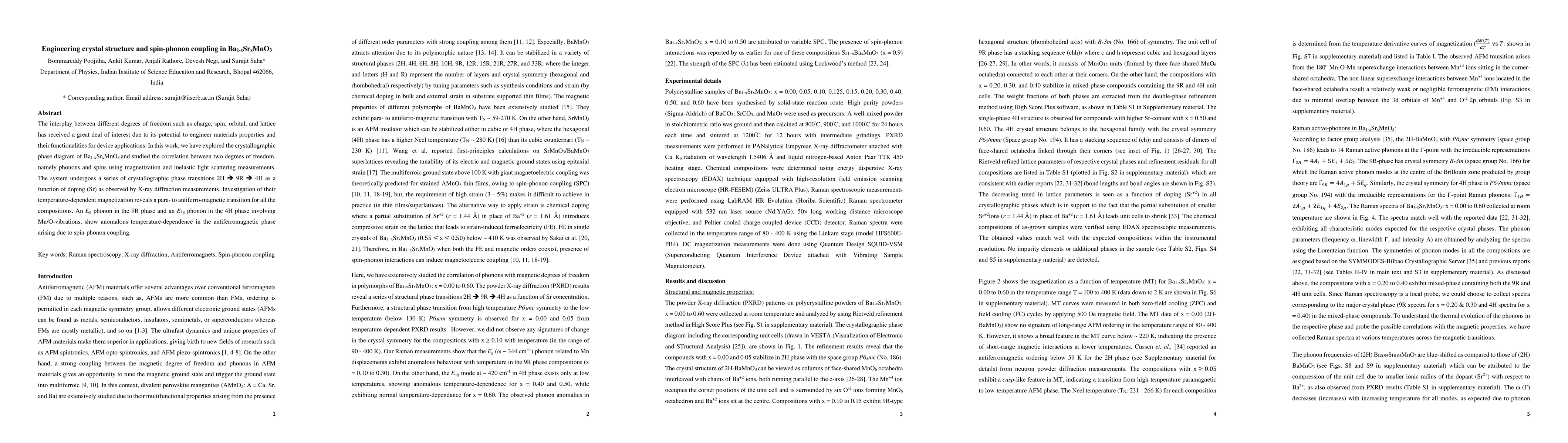 This paper investigates the crystal structure and spin-phonon coupling in Ba1-xSrxMnO3, revealing a series of phase transitions and a para- to antiferromagnetic transition. Anomalous temperature-dependent phonons in specific phases indicate significant spin-phonon coupling effects.