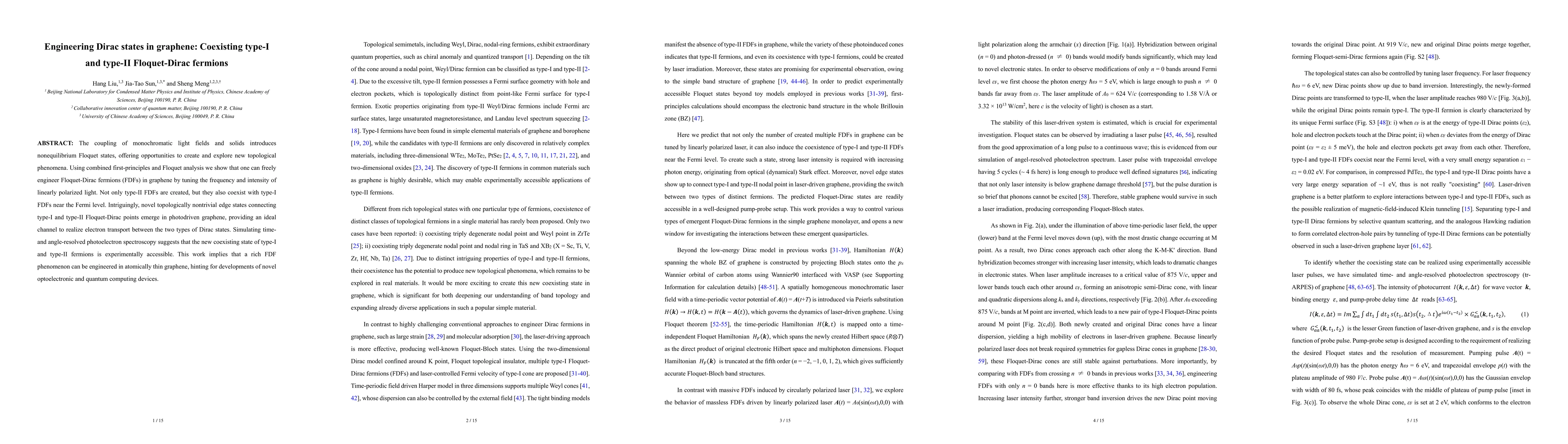This research demonstrates how to engineer coexisting type-I and type-II Floquet-Dirac fermions in graphene using light fields, leading to novel topological edge states and potential applications in optoelectronics and quantum computing. Experimental accessibility is confirmed through simulations of photoelectron spectroscopy.