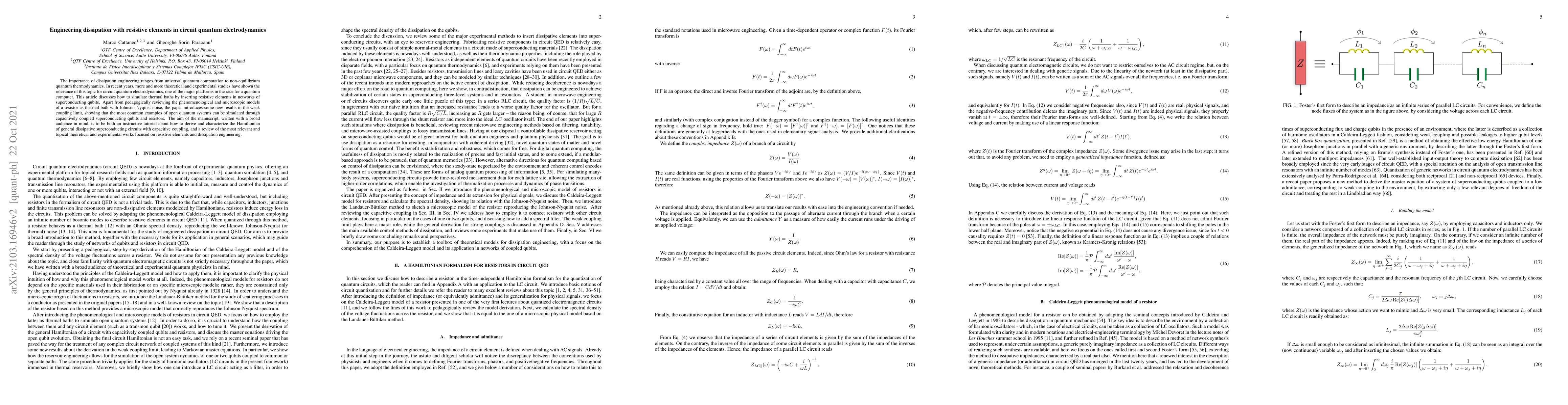 The importance of dissipation engineering ranges from universal quantum computation to non-equilibrium quantum thermodynamics. In recent years, more and more theoretical and experimental studies have shown the relevance of this topic for circuit quantum electrodynamics, one of the major platforms in the race for a quantum computer. This article discusses how to simulate thermal baths by inserting resistive elements in networks of superconducting qubits. Apart from pedagogically reviewing the phenomenological and microscopic models of a resistor as thermal bath with Johnson-Nyquist noise, the paper introduces some new results in the weak coupling limit, showing that the most common examples of open quantum systems can be simulated through capacitively coupled superconducting qubits and resistors. The aim of the manuscript, written with a broad audience in mind, is to be both an instructive tutorial about how to derive and characterize the Hamiltonian of general dissipative superconducting circuits with capacitive coupling, and a review of the most relevant and topical theoretical and experimental works focused on resistive elements and dissipation engineering.