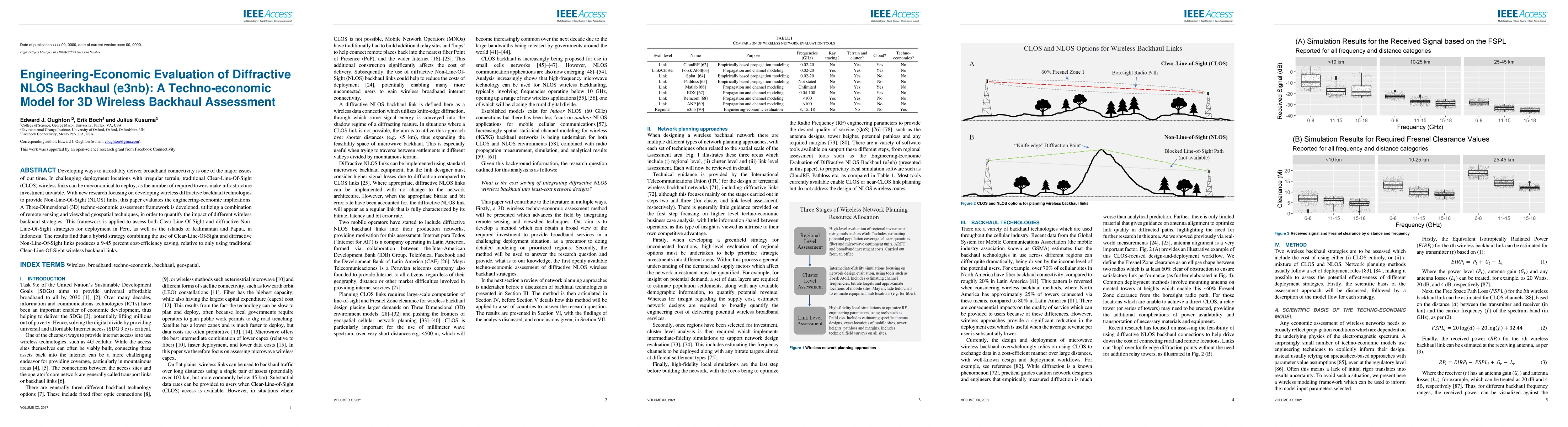 Developing ways to affordably deliver broadband connectivity is one of the major issues of our time. In challenging deployment locations with irregular terrain, traditional Clear-Line-Of-Sight (CLOS) wireless links can be uneconomical to deploy, as the number of required towers make infrastructure investment unviable. With new research focusing on developing wireless diffractive backhaul technologies to provide Non-Line-Of-Sight (NLOS) links, this paper evaluates the engineering-economic implications. A Three-Dimensional (3D) techno-economic assessment framework is developed, utilizing a combination of remote sensing and viewshed geospatial techniques, in order to quantify the impact of different wireless backhaul strategies. This framework is applied to assess both Clear-Line-Of-Sight and diffractive Non-Line-Of-Sight strategies for deployment in Peru, as well as the islands of Kalimantan and Papua, in Indonesia. The results find that a hybrid strategy combining the use of Clear-Line-Of-Sight and diffractive Non-Line-Of-Sight links produces a 9-45 percent cost-efficiency saving, relative to only using traditional Clear-Line-Of-Sight wireless backhaul links.