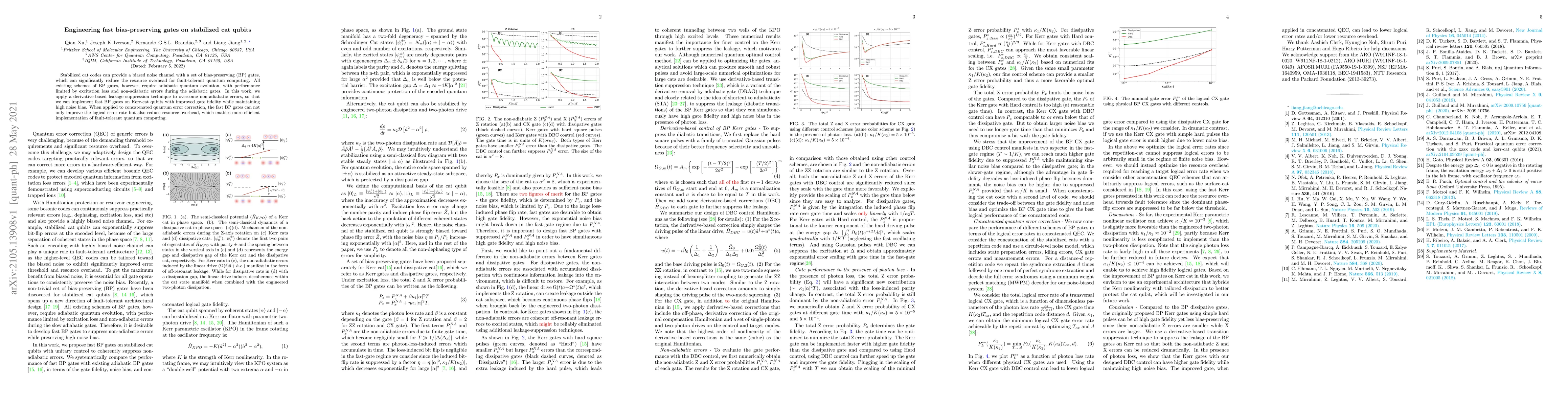 This paper proposes a method to engineer fast bias-preserving gates on stabilized cat qubits using a derivative-based leakage suppression technique, which improves gate fidelity and reduces resource overhead for fault-tolerant quantum computing. The approach enhances the efficiency of concatenated quantum error correction by minimizing logical error rates.